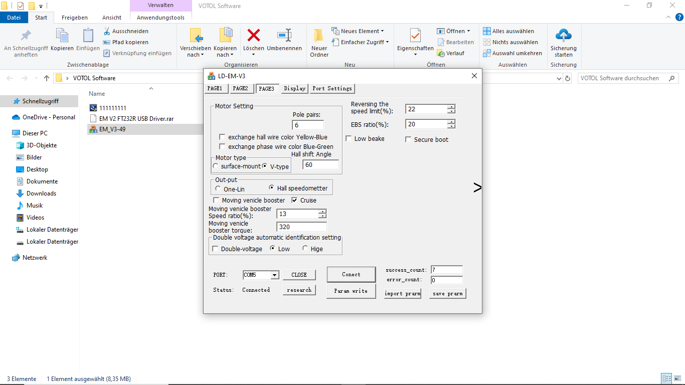 Der Motor läuft mit den jetzigen Einstellungen wunderbar, die Geschwindigkeit die angezeigt wird stimmt auch.