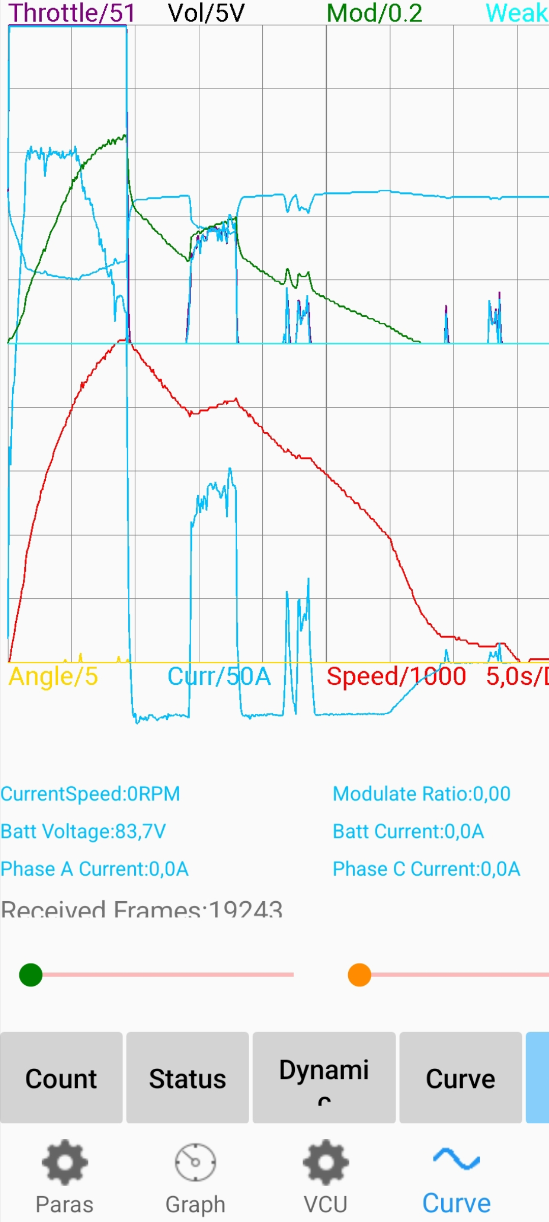 Vermute das ich da noch mal ein Auto-Learn machen muss, da mir die untere Gasgriffspannung mit 1,1V zu hoch vorkommt und der Roler ja auch nicht lastftei rollt. Er zieht immer drehzahlabhänig Strom.