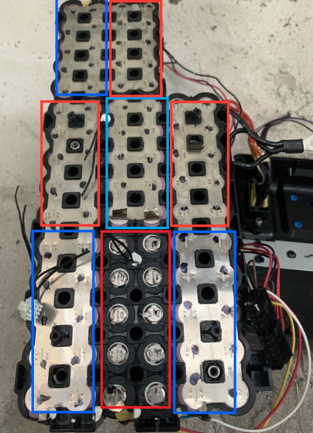 Es sollten ja normal 10er Blöcke sein. Wie ihr auf dem Bild aber sehen könnt umfasst das Nickelband 20 Zellen. Auf der anderen Seite dann komplett anders zusammengefasst. Sehe da noch nicht so ganz durch was die Verschaltung angeht.