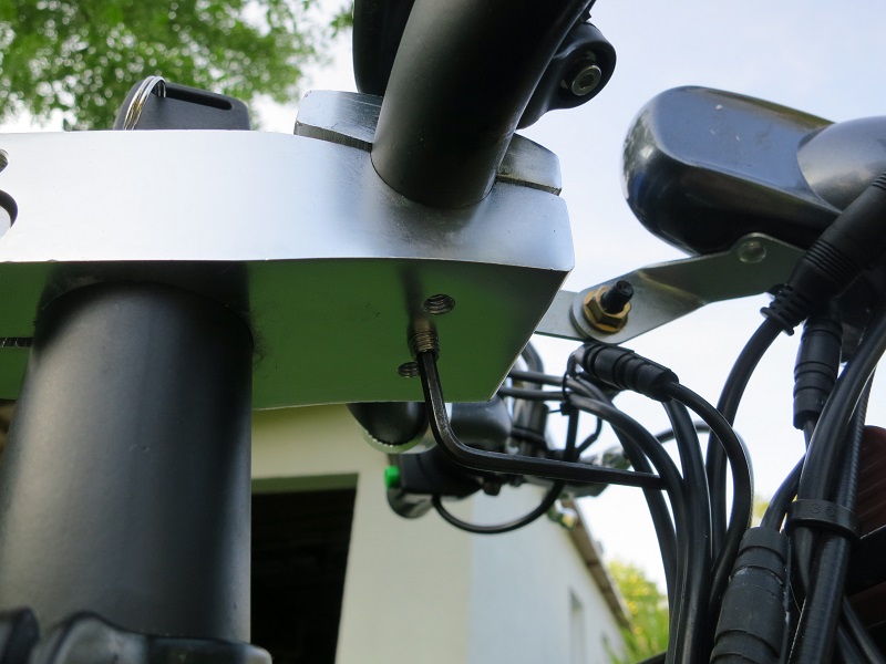 Wenn man Pech hat, sitzt die Madenschraube mit dem Imbuskopf falschherum drin. Dann muss man die Lenkerhalterung ganz aufschrauben und die Madenschraube umdrehen.