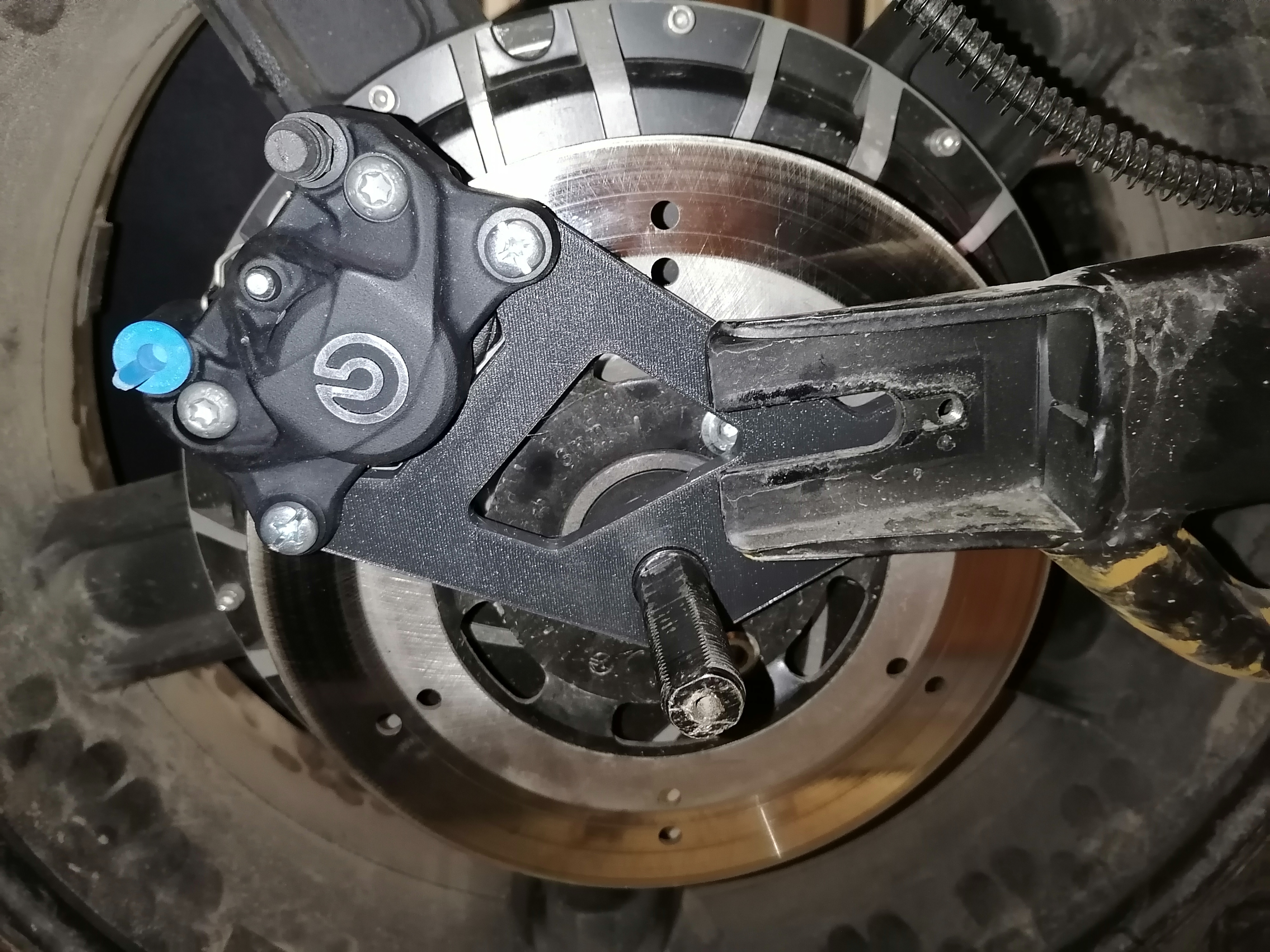 new bracket for new Brembo rear brake caliper is currently being manufactured so I will ride again soon