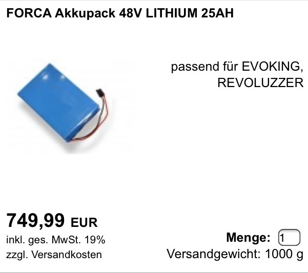 dafür Garantie, die ist mehr Wert als 100 EuroBjörn1946 hat geschrieben:Bei Conrad viel zu teuer. Dort ist es nur ein 20AH und kostet 699 EUR, bei Forca kostet der 20er 599 EUR.