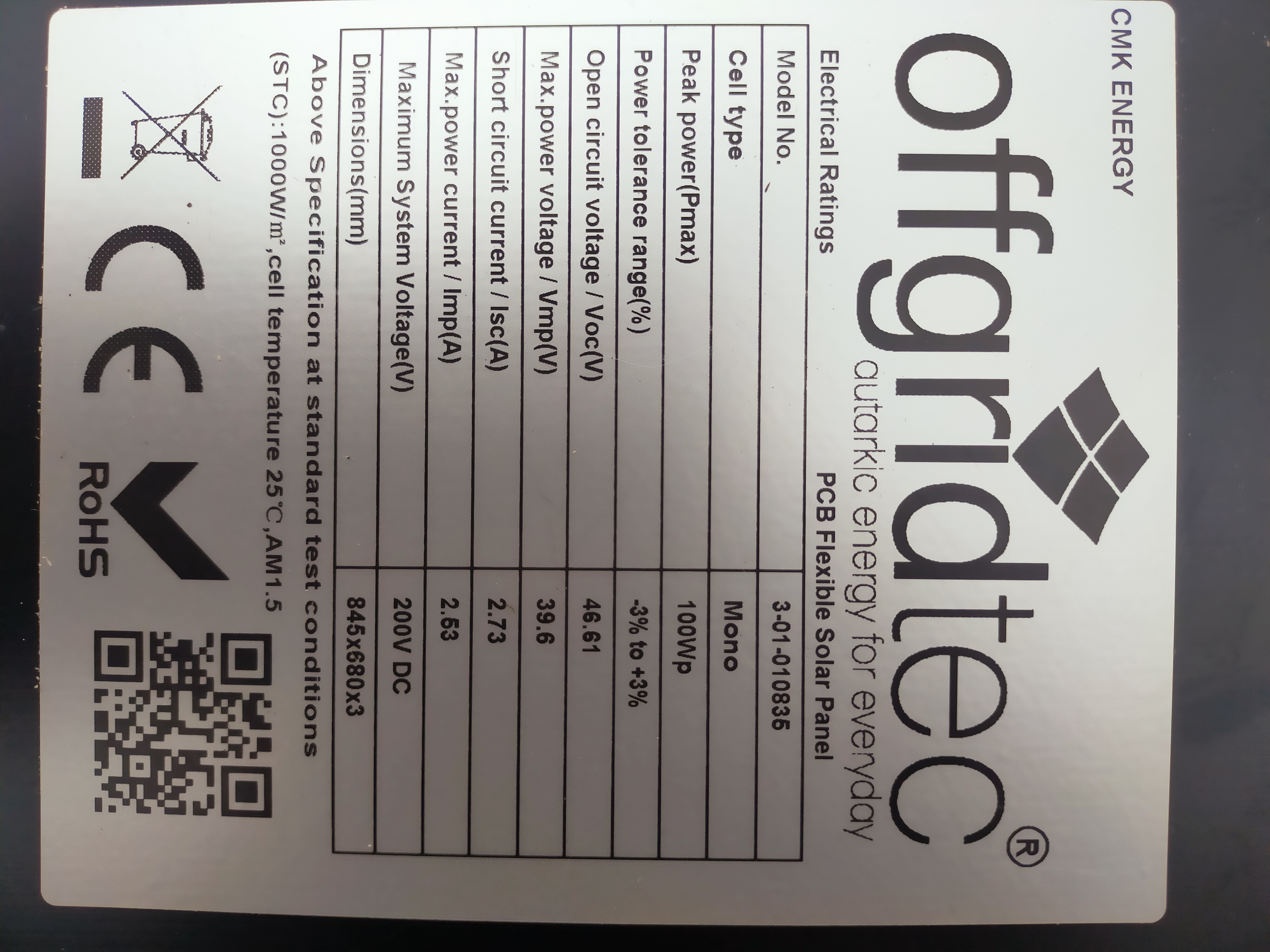 Ich werde folgende Zeilen für Interessierte schreiben, die auch Solarmodule auf ihrem Elektroroller anbauen möchten. Die zwei 12 V zuvor verbauten Solarmodule und Haltegitter habe ich abgebaut, weil die China Module sowieso nicht so leistungsfähig waren und jetzt an der Anschlußdose ein Kabelbruch vorliegt und die Moduloberflächenfolie komplett durch das Sonnenlicht, nach etwas 3 Jahren, beschädigt. Mann müßte diese oberste Schicht abbürsten, um die Plastereste zu entfernen. Zwei Module in Reihe geschaltet gewesen, MPPT boost step Up Laderegler verwende ich weiter. Zusätzlich habe ich einen Bauartgleichen angebaut ,der ebenfalls auch 72 V Nennspannung, also fast ca. 88 V Spannung zum Laden der 62 Ah 72 V Bleigelakkubank. Der Umbau wurde auch nötig, weil ich die Anhängerkupplung meines baugleichen anderen Leo jetzt auf diesen angebaut habe. Jetzt mußich noch ein neues Haltegitter für das 24V, größere 100 W Modul des deutschen Herstellers offgridtec bauen.