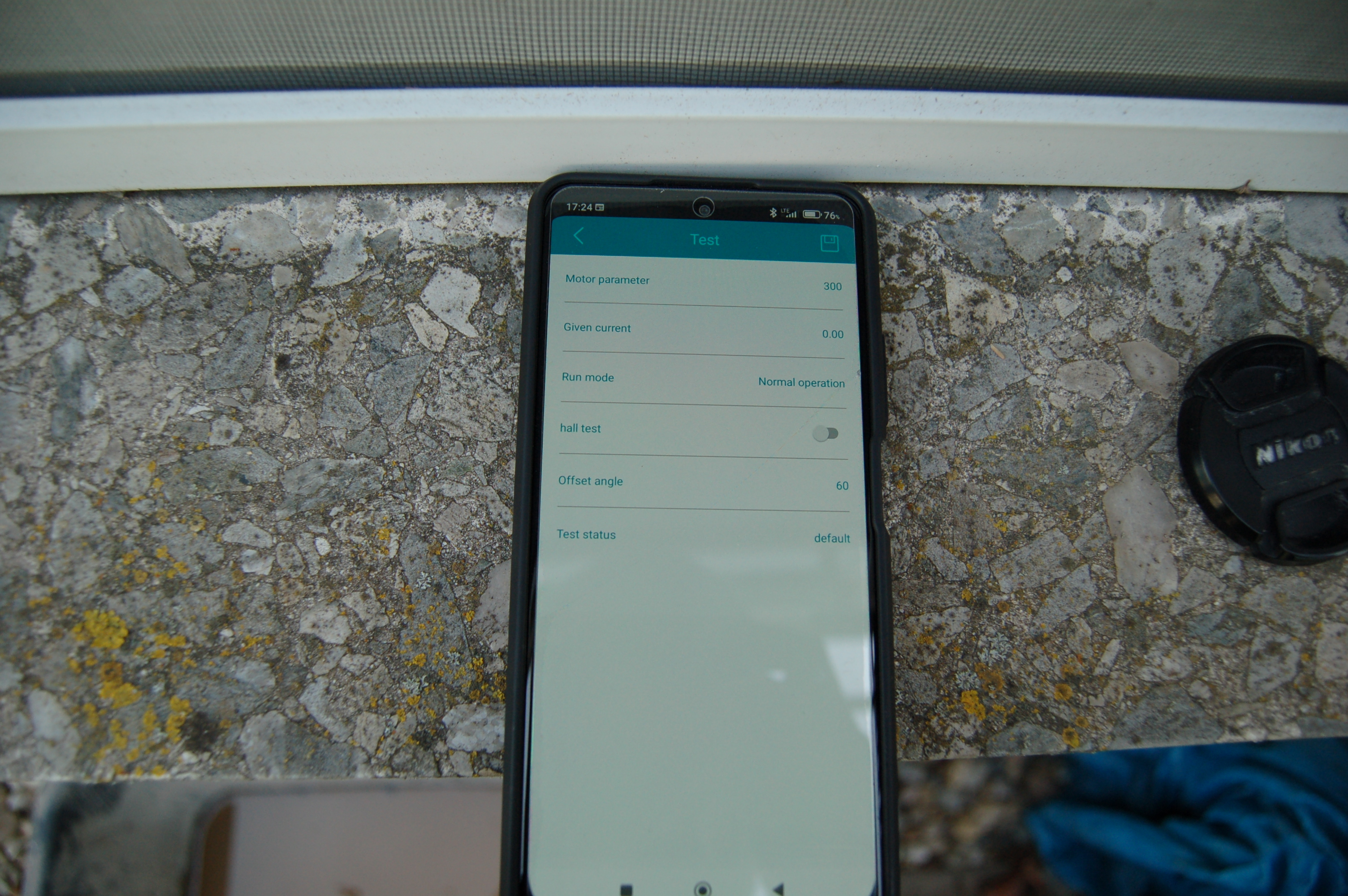 Aus meiner Sicht ist das Ergebnis des Motor-Hall-Tests nicht korrekt abgespeichert worden. Jedenfalls sollte die korrekte Messung eher eine "krummere" Zahl als exakt 60 für den Offset ergeben. Das der Motor nicht anläuft, könnte daran liegen.