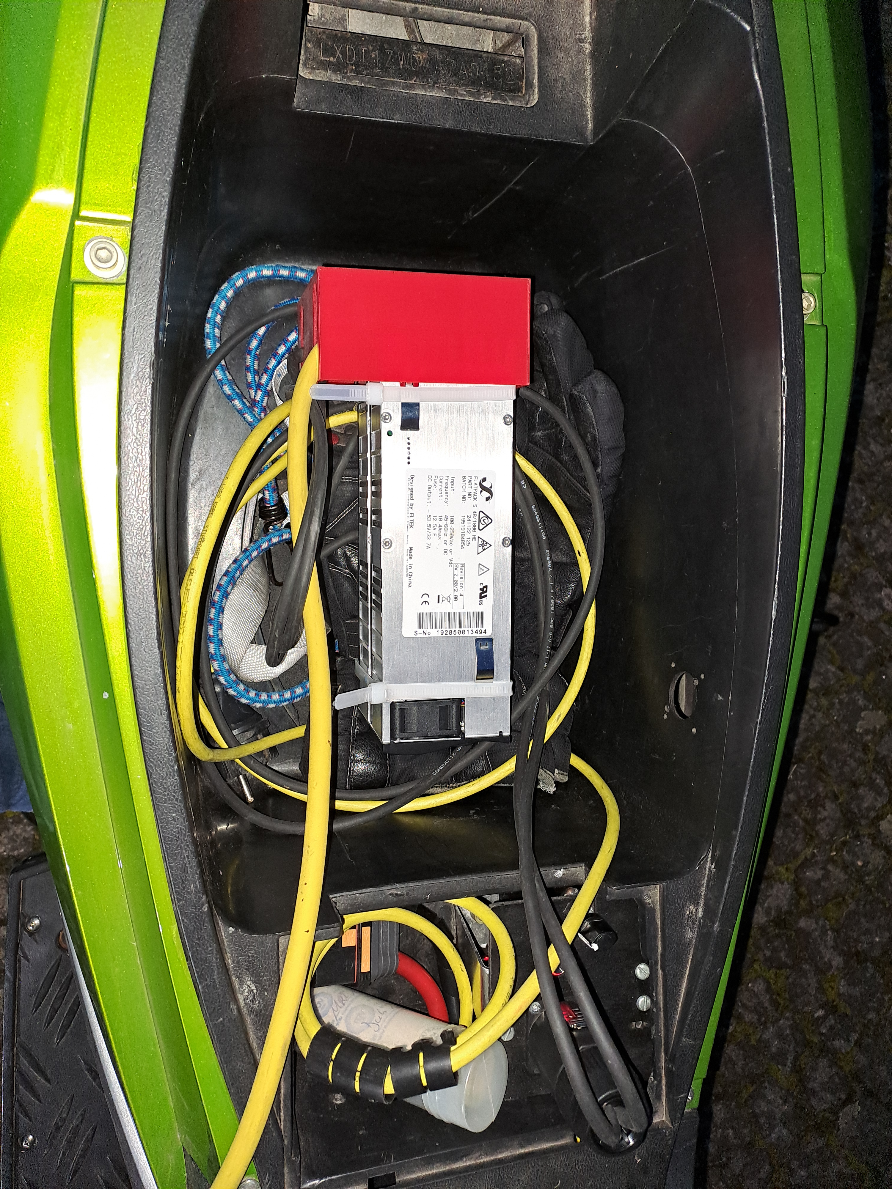 2x Eltek Flatpack S 48V 1800W in Reihe geschaltet, jedes auf 43,75V = zusammen auf 87,5V eingestellt