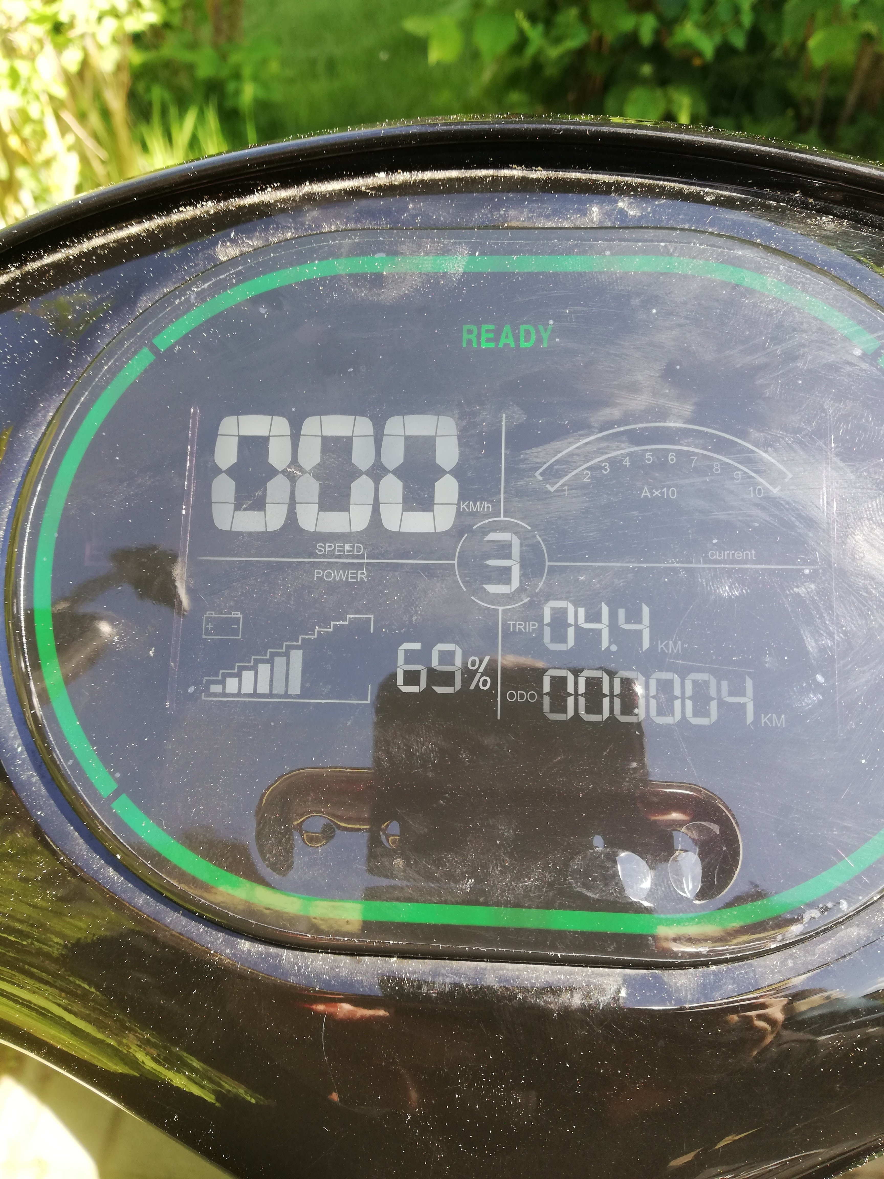 Der Roller muss mangels Garage immer draußen stehen. Als er Anfang Februar für 3 Wochen unter der Plane stand war anschließend das Display oben ausgefallen. Also die km/h und die Ampere Anzeige. Ladezustand und Kilometerstand sowie Trip waren noch lesbar. Nutze seitdem die Android Tachometer App. Ein Vorteil davon ist das die reale Geschwindigkeit angezeigt wird.