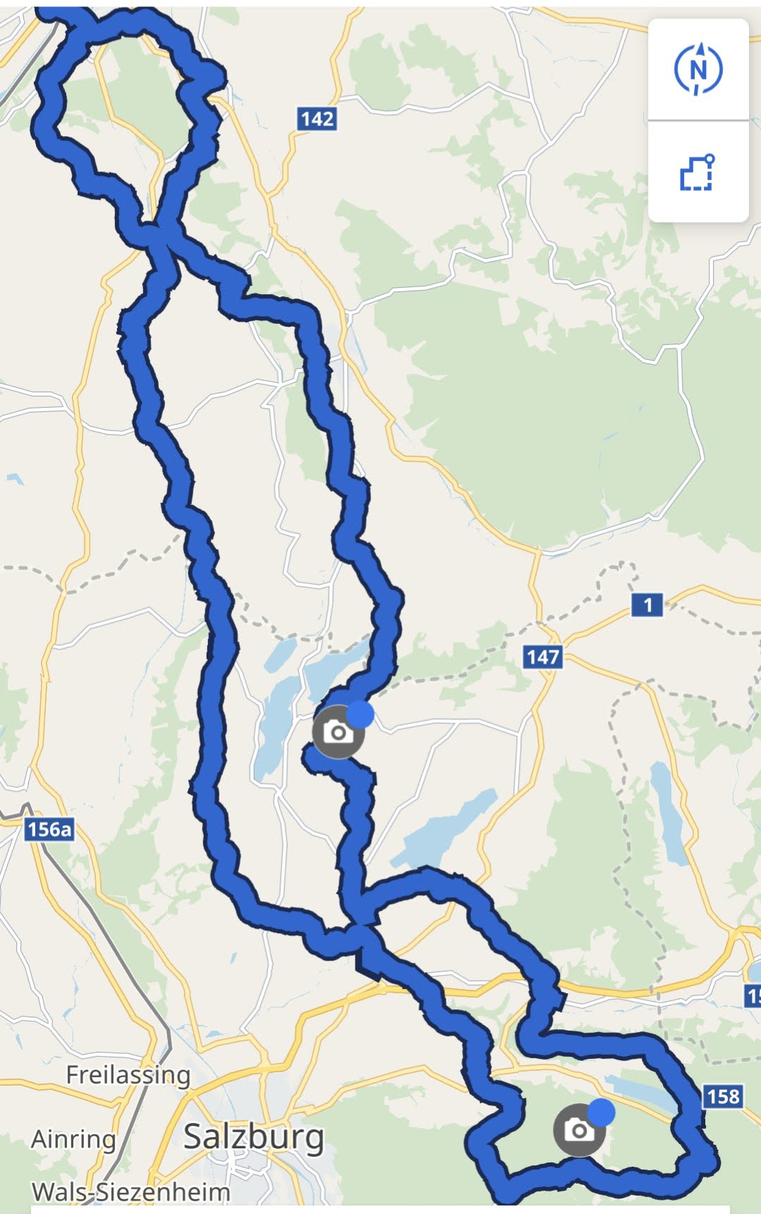 185km Runde ins Salzburger Land an unserem früheren Wohnort und Wohnhaus in Fuschl am See vorbei, die ersten Jahre der Kinder und ganz viele wunderbare Erinnerungen. Direkt davor ein kurzer Blick zum dortigen RB Headquarter. Dann Tiefbrunnau, Faistenau (Ladestopp 2) und die geniale Strubklamm (40er Limit). Später vorbei am Salzburgring, wo ich früher mehrmals Ring gefahren war. Immer einen Besuch wert, auch wenns als Rennstrecke nicht meins ist. Dann kommt noch der kleine Gstaiger Berg, wo eine Gruppe Superdukes unten gewartet hatte. Mei, dann halt elektrisch vorbei.