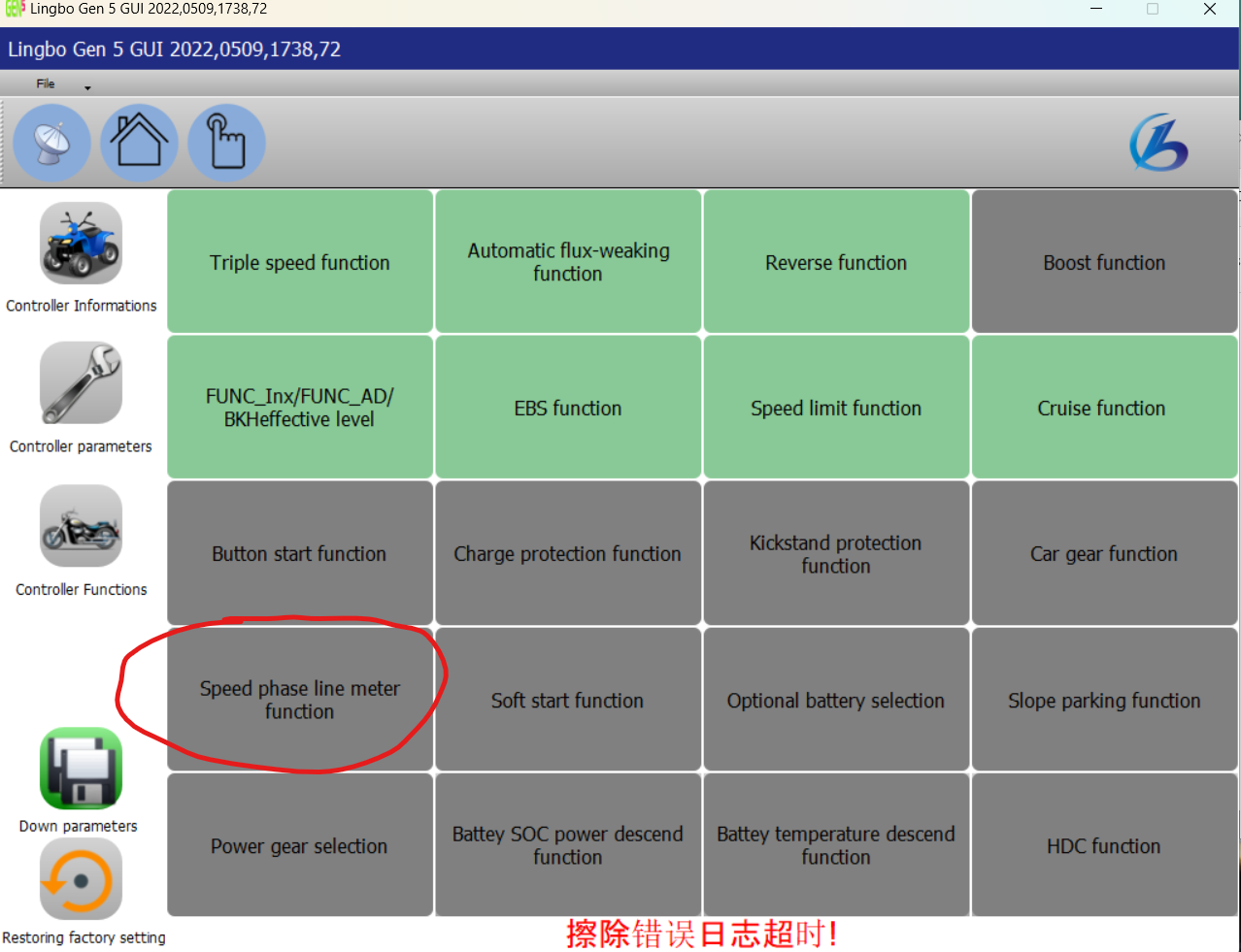 - Ausgegraute "Speed phase line meter function": Die grauen Optionen zeigen an, dass diese Funktion nicht verfügbar ist.