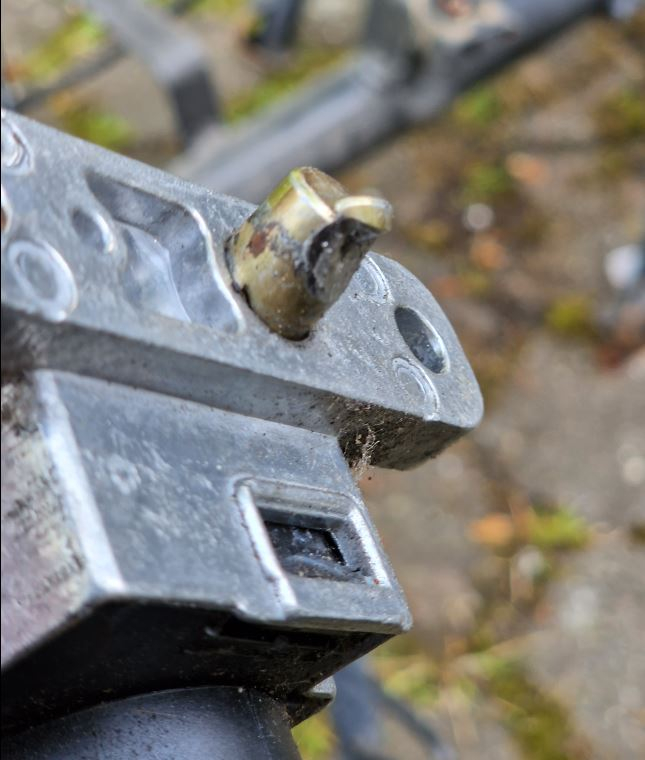 Jetzt kann man auch den kleinen Ständer demontieren. Auch dieser hat zum Schutz einen Mikroschalter, der den Motor stoppt, damit man nicht mit ausgefahrenem Ständer losfährt. Wenn der Festsitzt, geht der Motor nicht. (Warnsymbol im Display)