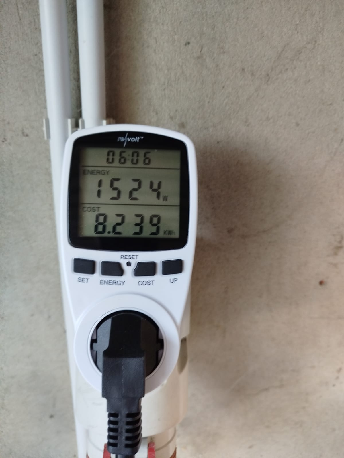 Hier ein die Leistungsaufnahme an der Steckdose.