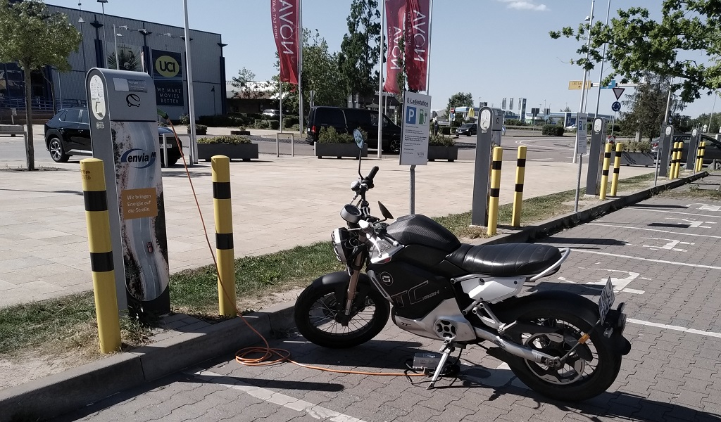 Das langt mir ja schon. Der schwarze Stecker hängt am Ladegerät, das orangene Kabel ist in der Ladesäule verriegelt. Am Moped könnte das Kabel auch abgezogen werden. Mir geht es eher darum, Gelegenheitsdieben keine Gelegenheit zu bieten ;-)
