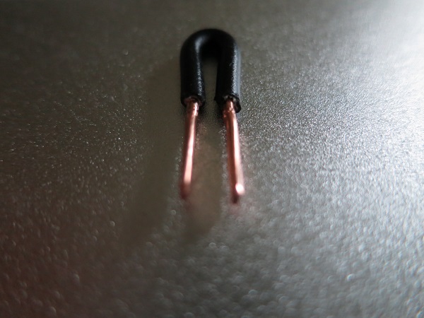 Es bleibt also nur den Schalter am Ständer zu deaktivieren. Dazu habe ich ein 5cm langes Kabelstück (1,5qmm) an beiden Enden 1cm abisoliert und die Enden flach gehämmert. Das Ganze zu einem U gebogen und schon ist die selbst gebaute Brücke fertig.