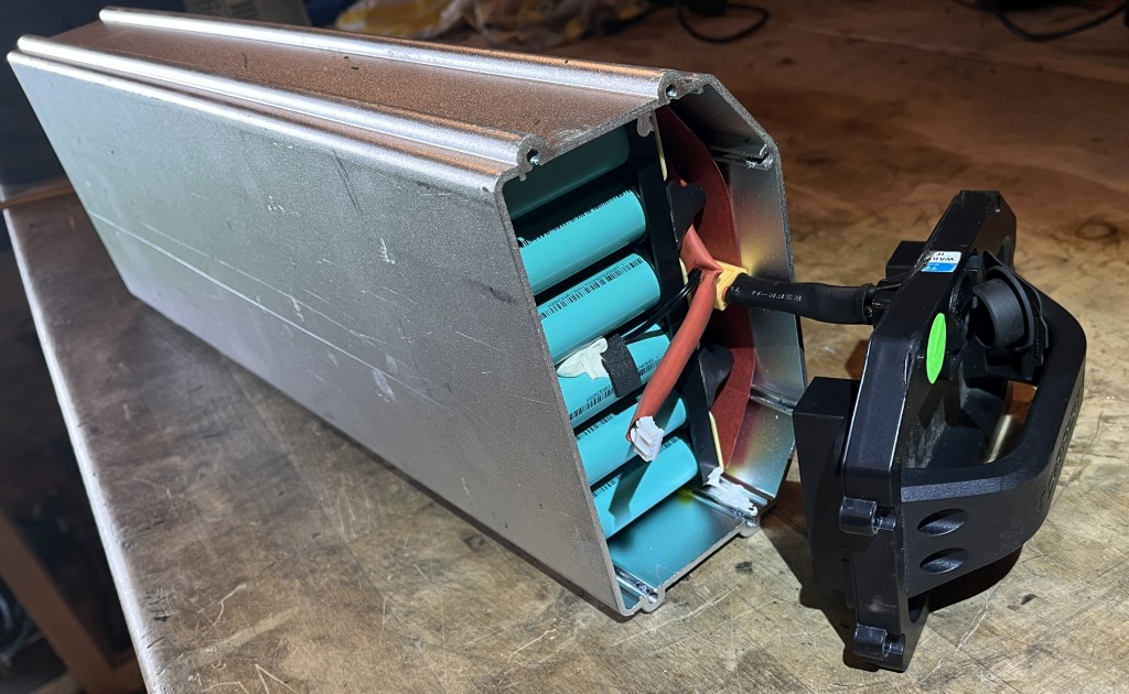 Die Akkus scheinen nicht verdongelt, ich messe volle Spannung (48V System) an den Kontakten, interessant vielleicht für Zweitverwertung. Bilder vom Inneren des Akkus habe ich schon gemacht, die waren alle schonmal offen (Sticker zerrissen). Ich muss sie noch vom Telefon herunterladen, das kann ein paar Tage dauern...