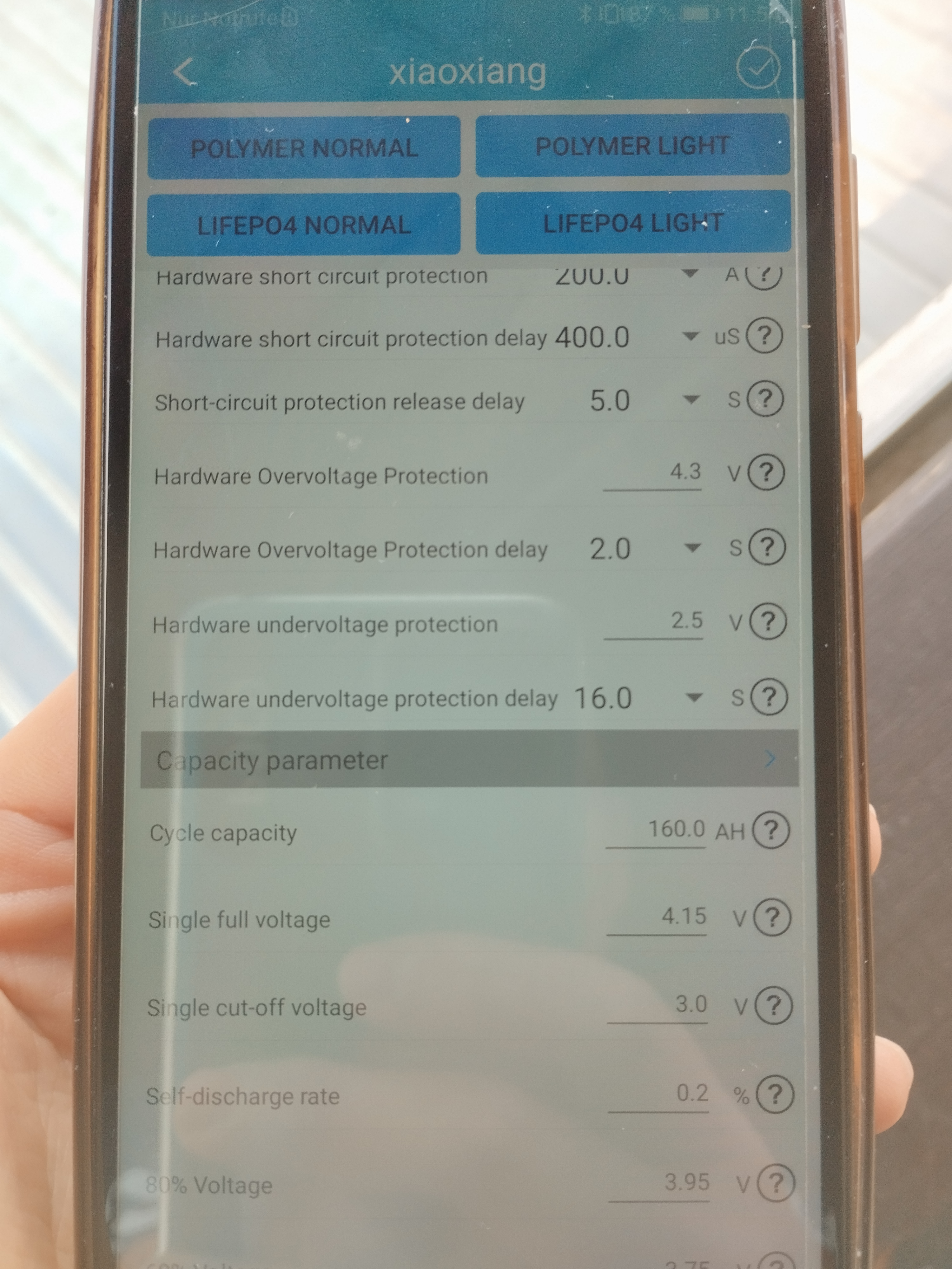Ich denke ja die App hat diese Werte vom BMS bekommen, beim ersten starten/verbinden der App wurden diese Werte direkt angezeig mit der Option confirm und cancel, ich bin auf cancel gegangen da ich mir hier nicht sicher war und nun sehe ich aber diese Werte.