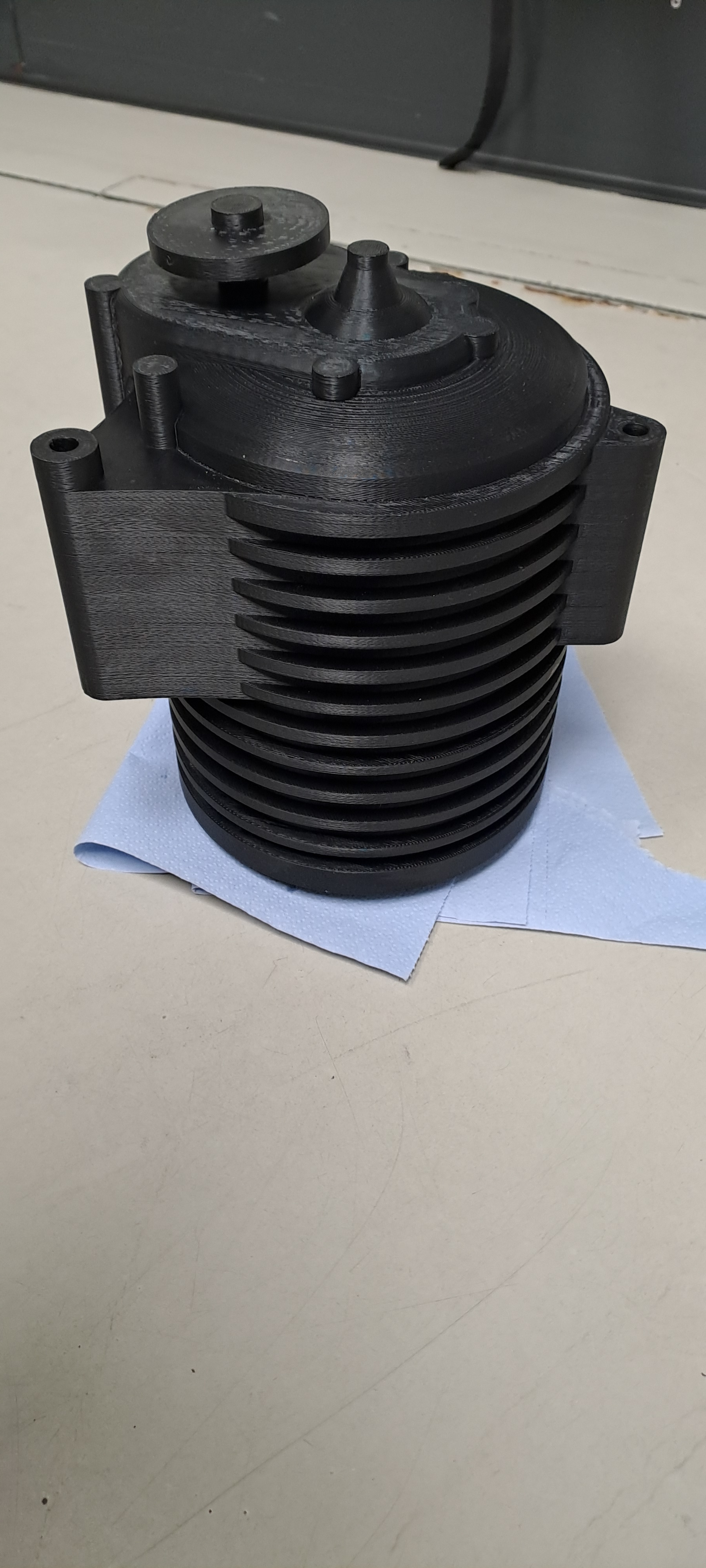 Angefangen hat alles mit einem Teil aus dem Drucker. Dann kann der erste Probeaufbau mit anpassen der Kettenflucht Erste Anprobe im Rahmen Mit Batteriekasten Akkukasten mit "Zellmustern" aus Alu Anprobe mit Blechkleid