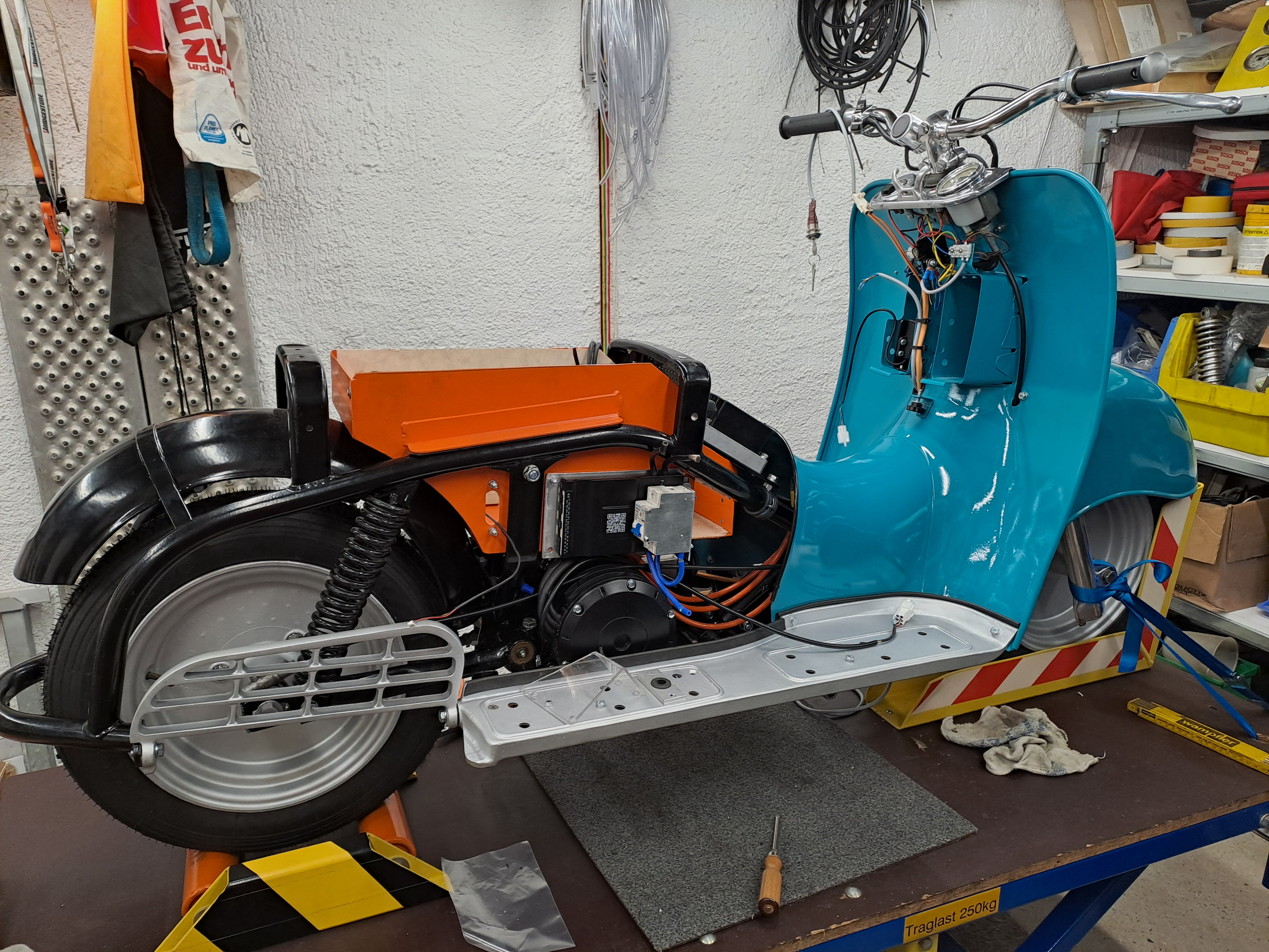 Und für alle die nicht verstehen können warum man einem Klassiker so einen Elektro Umbau antut. Der Besitzer hat schon einige dieser Roller restauriert.