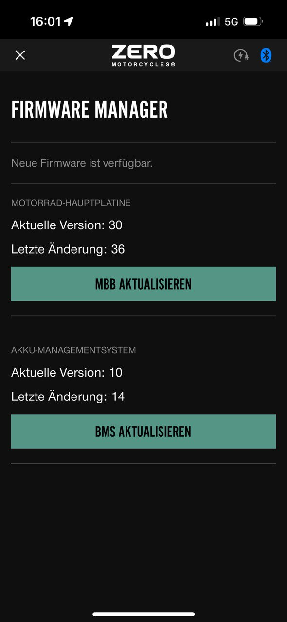 Habe es gerade bei meiner "Cypher II" Zero von 2017 probiert. Laut der Zero Seite seien MBB V38 und BMS V45 aktuell, doch die Überprüfung per App ergab ein Updatebedarf auf MBB V39 und BMS V46, letzteres sogar auf zwei Tranchen verteilt, BMS und BMS #2. Fast ein Stunde haben die drei Updates gedauert, das erste sogar länger als die angegebene halbe Stunde, so dass die App meinte, ich solle die Zero für 3 Minuten ausschalten, dann wieder anschalten, und prüfen, ob das MBB V39 tatsächlich drauf ist. War es, und scheint auch alles soweit zu funktionieren: