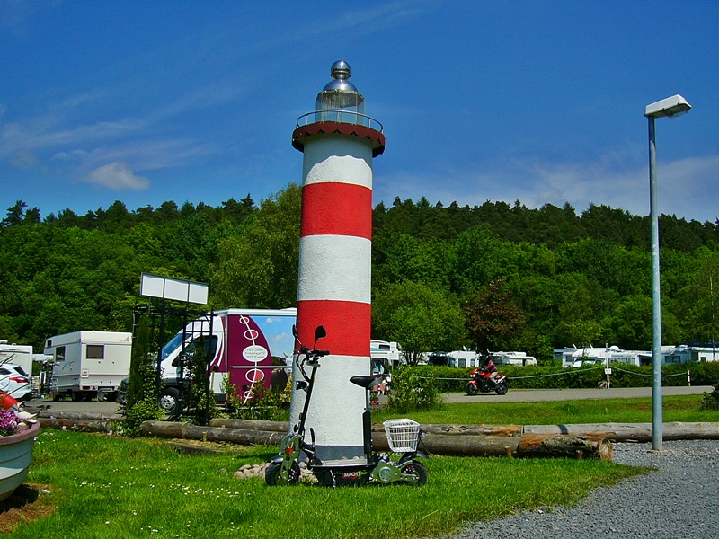 Ein Leuchtturm am Twistesee, ich hau´mich weg. Fahren denn da die dicken Containerschiffe mit den Scootern aus China?