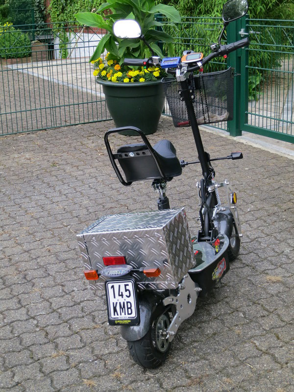 ich habe den hinteren Korb gegen eine selbst gebaute Alu-Box ausgetauscht.