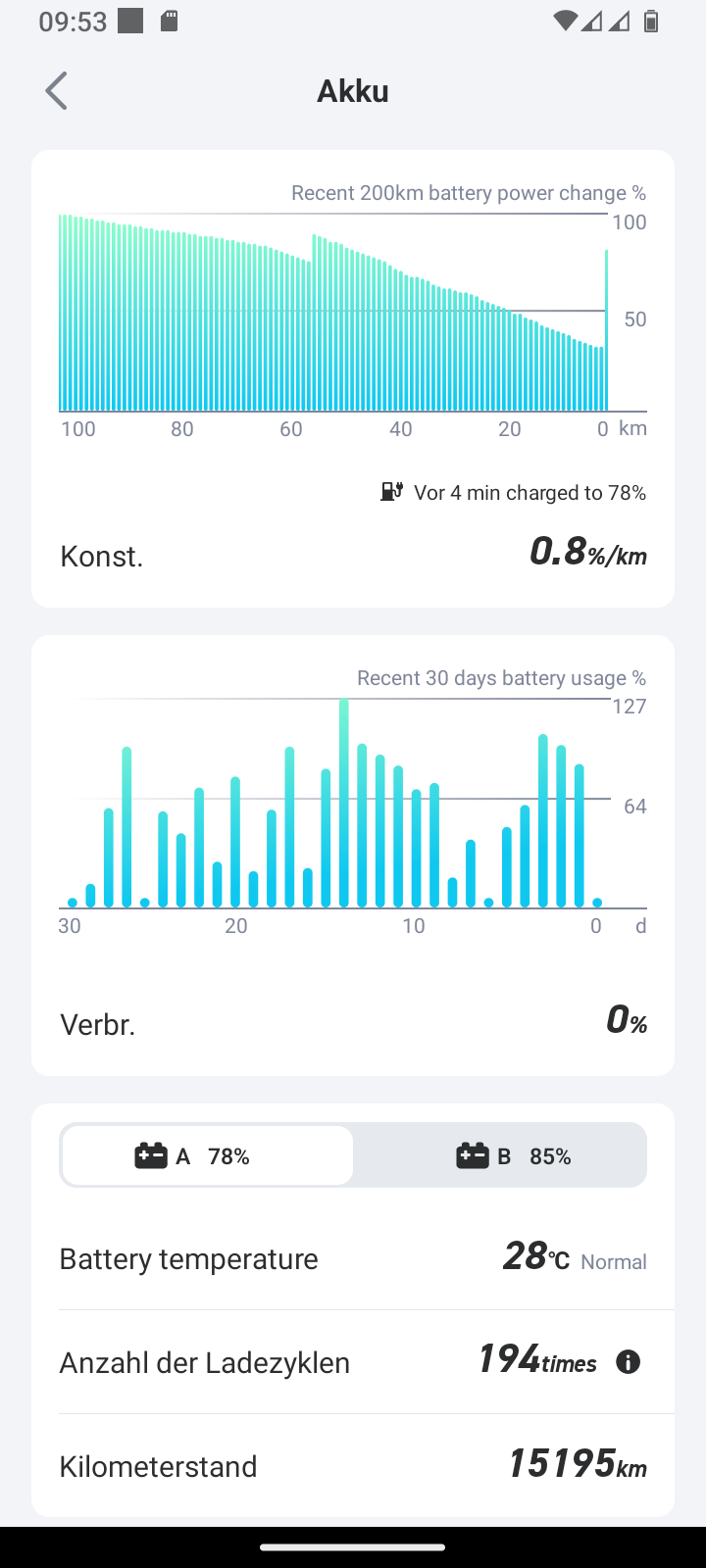 Bitte aktualisieren. Ngt 20.200 km Erster Akku und erster Motor, Zyklen weiss ich nicht.