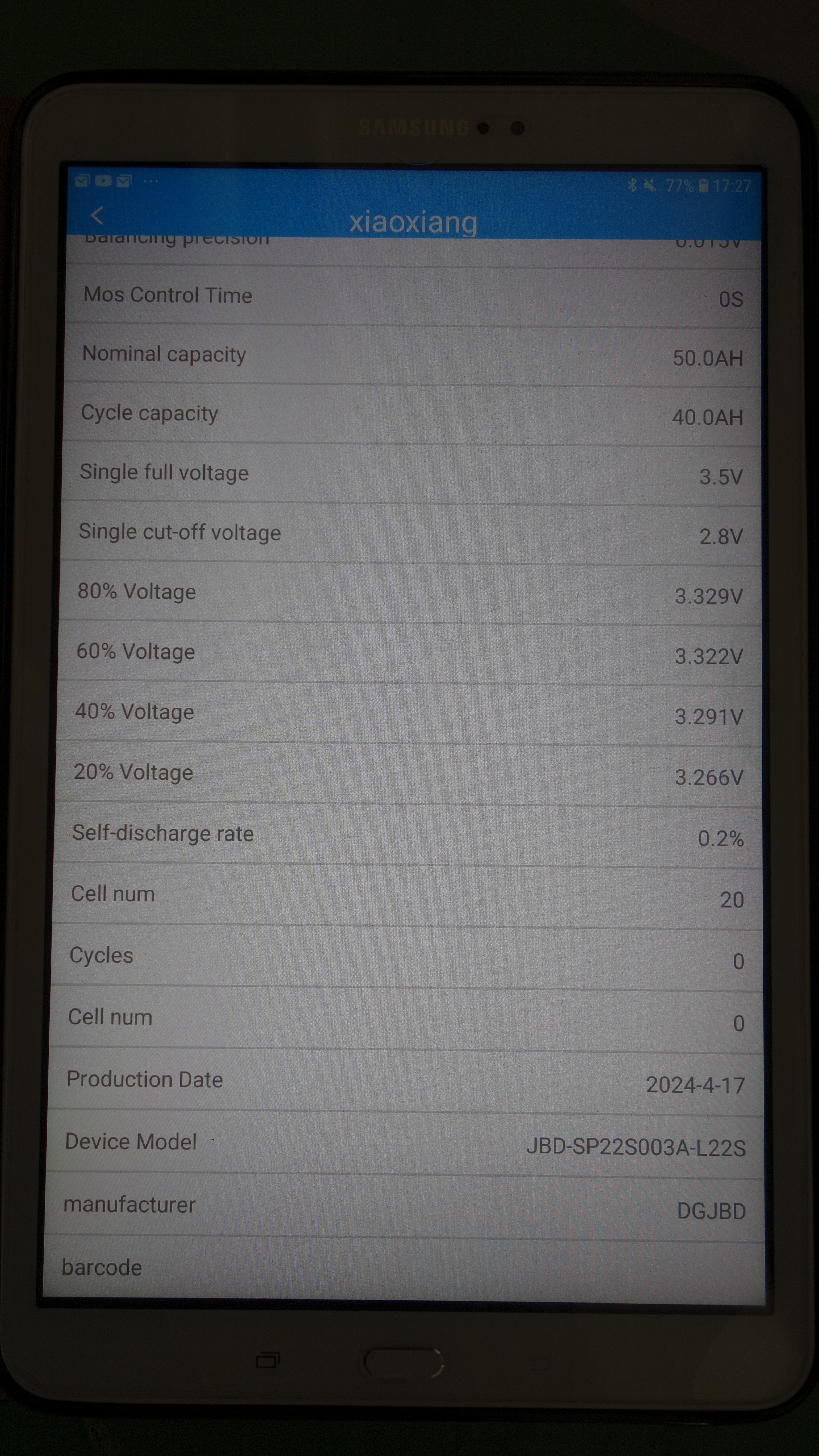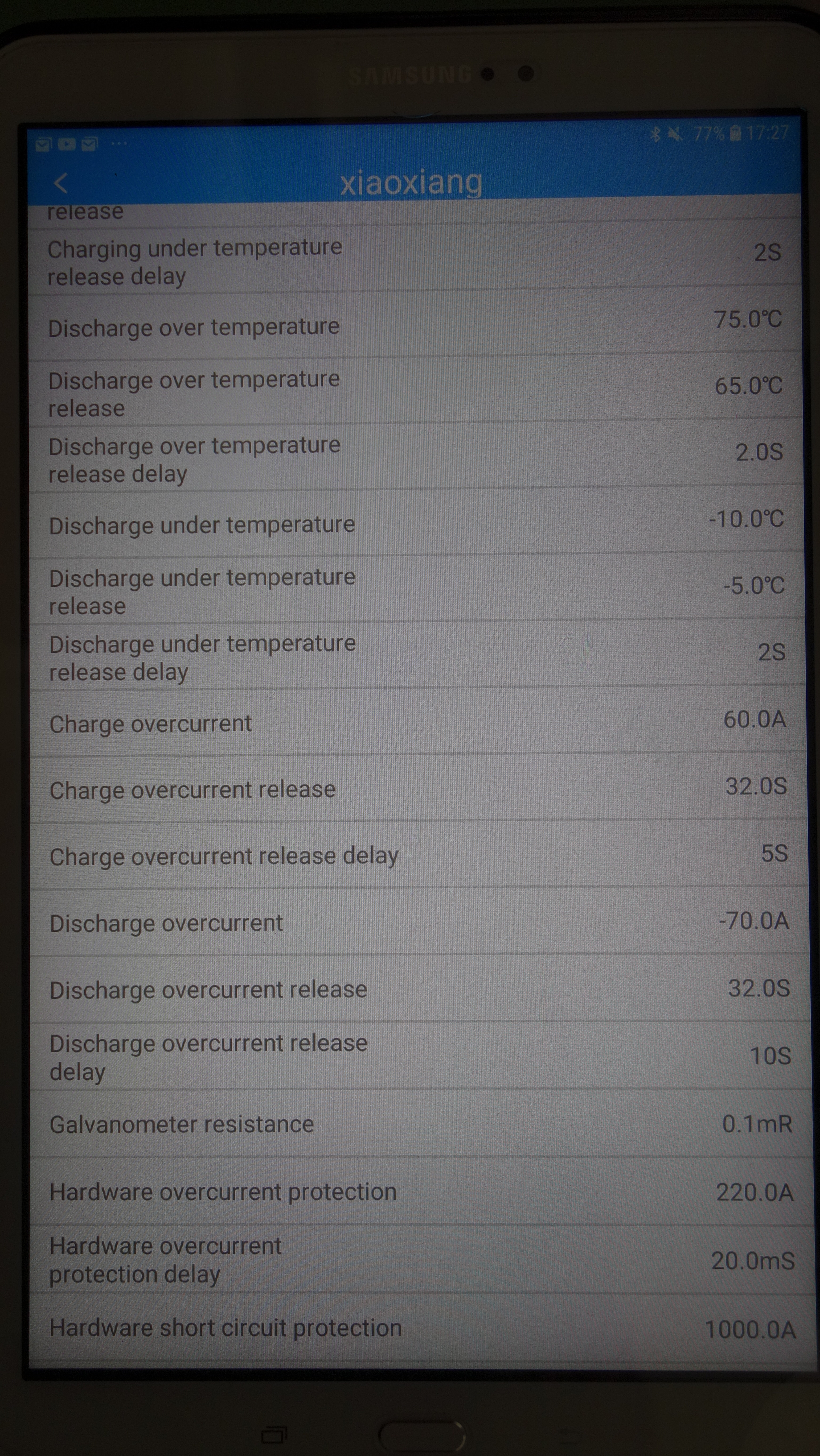 Ich vermisse dort Einstellungen zum Balancing. Das kann bedeuten, dass es diese bei Deinem BMS nicht gibt, Du keinen Zugriff auf diese Einstellungen hast (also auch kein "Read-Only") oder Du sie vielleicht auch einfach bislang übersehen hast.
