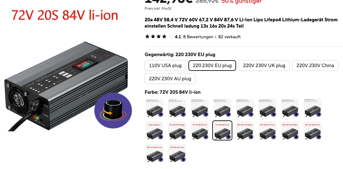 Die 72V (84V) 20S Li-ion Version mit EU Plug.
