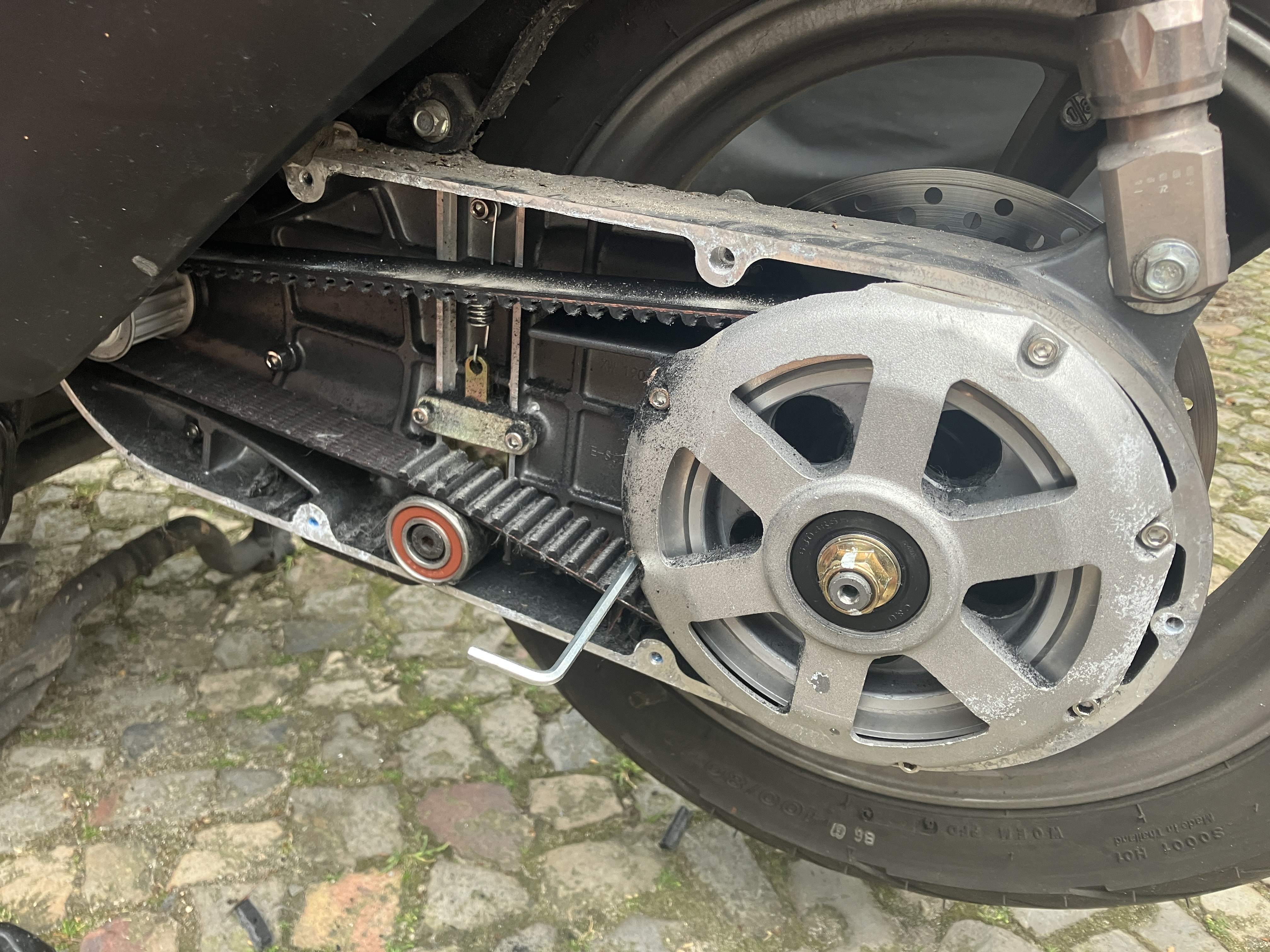 Einmal beim Anfahren war es dann so, dass der Motor in hohe Drehzahl geht, die Geschwindigkeitsanzeige hochrast, der Roller sich aber keinen Millimeter bewegt. Der Motor dreht quasi durch.