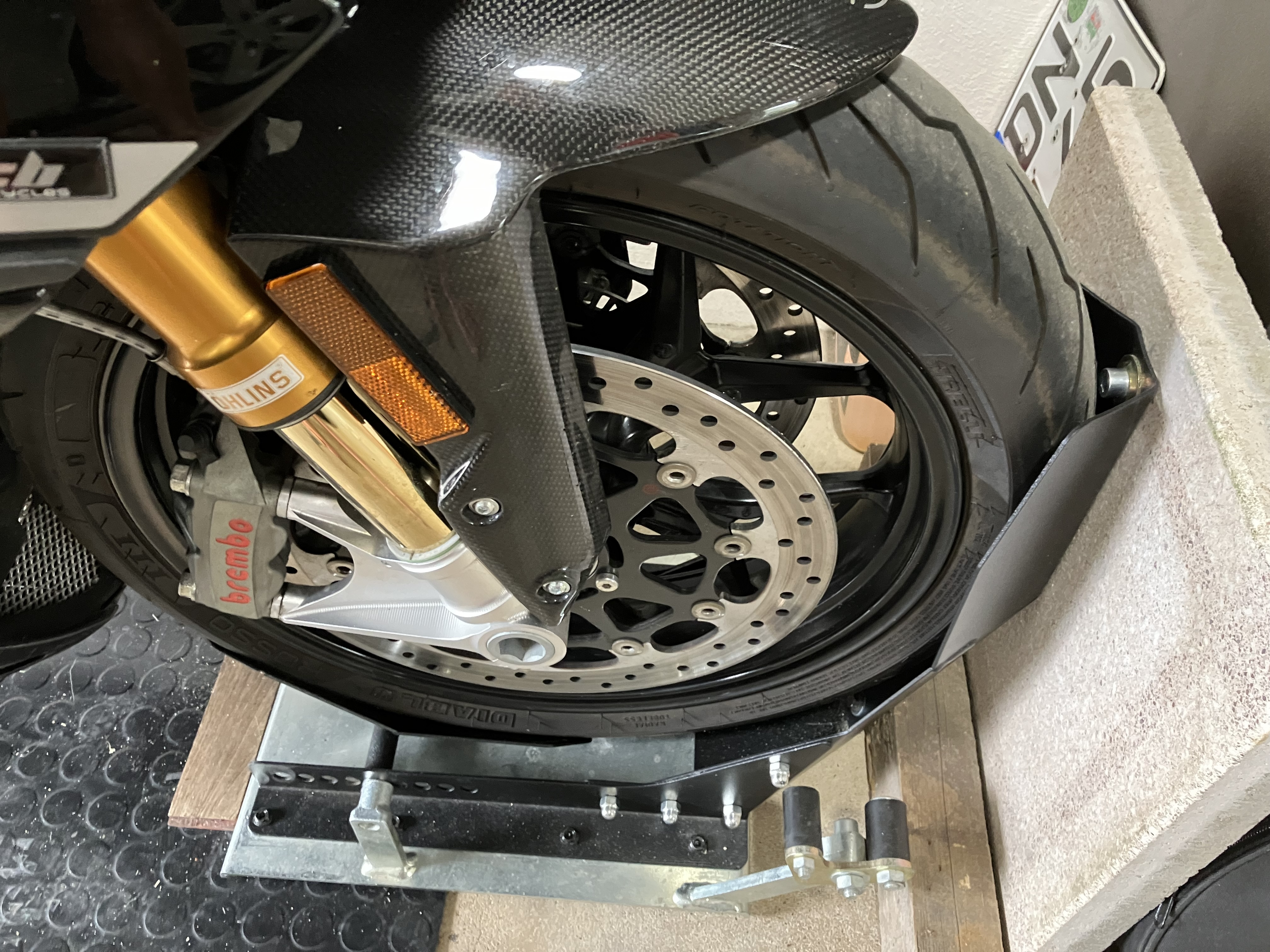 Für einen sicheren Stand musste meine K1200 Montageplatte und eine Terrassenplatte herhalten. Wollte nicht in der Garagenboden bohren.