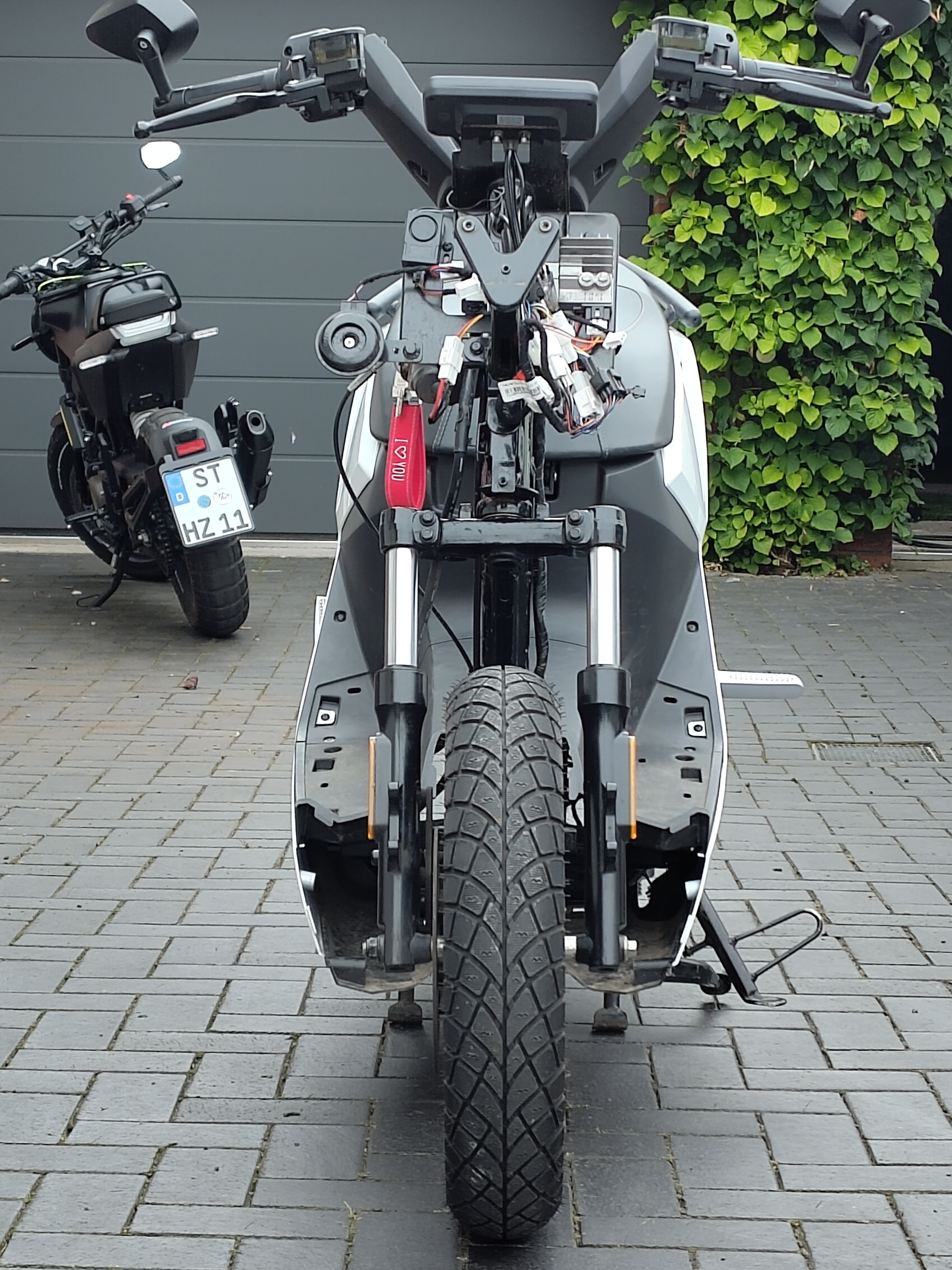 Mein Sohn hatte einen Sturz mit der SK1 - dabei ist der Roller an einen Bordstein geschlittert, und hat so hart mit dem Vorderrad gegen den Lenkanschlag am Rahmen geknallt, dass der Lenkanschlag das lenkerrohr unten am Rahmen offenbar ausgerissen hat. Der Lenker dreht total spielfrei, aber das Rad steht halt etwas schräg, was sich in einem krassen Zug zur Seite bemerkbar macht. Muss also behoben werden.