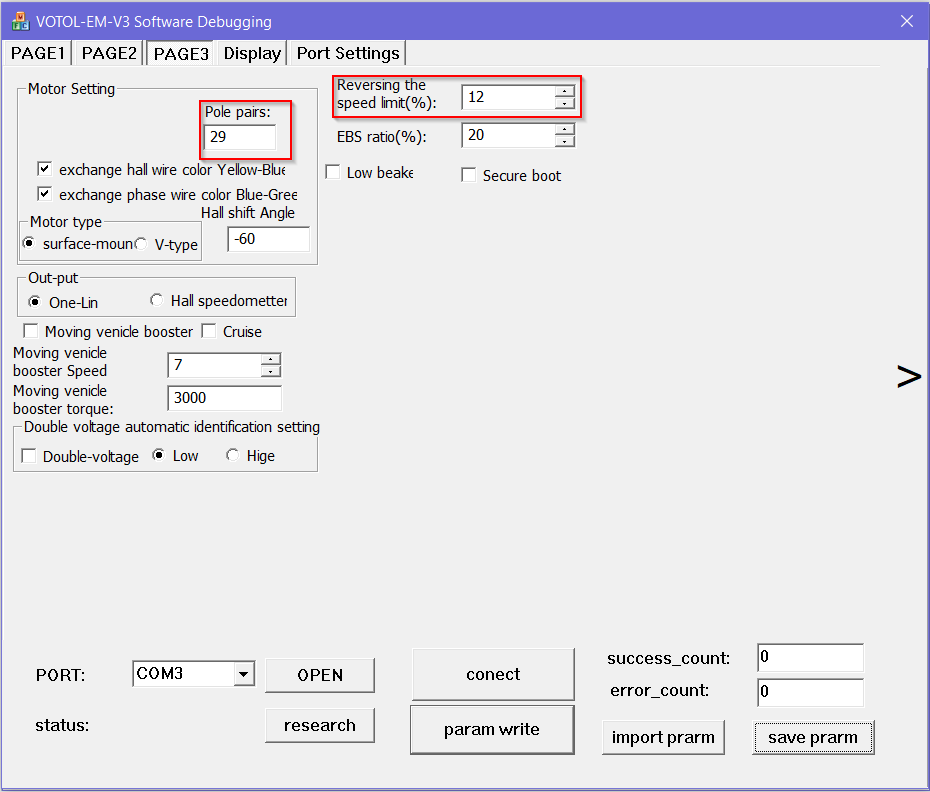 Re: Seat Mo mit Votol EM150/2 die Einstellungen