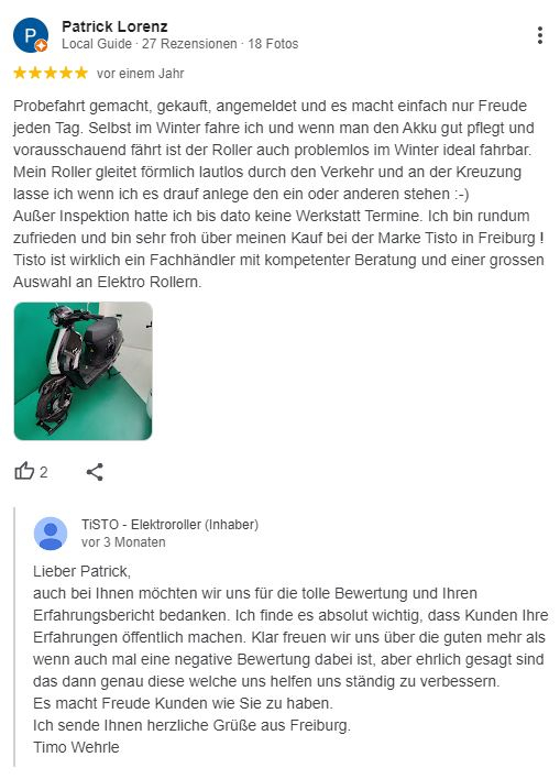 Die positiven Google-Rezensionen hatten mich damals leider auch geblendet. Es ist zwar schwer nachzuweisen, aber ich vermute, dass ein großer Teil der Bewertungen gefälscht ist oder möglicherweise im Austausch für Rabatte oder Ähnliches abgegeben wurde. Ein gewisser „Patrick Lorenz“ bewertet zum Beispiel mit 5 Sternen, arbeitet aber selbst bei Tisto – zufällige Namensgleichheit? :?: