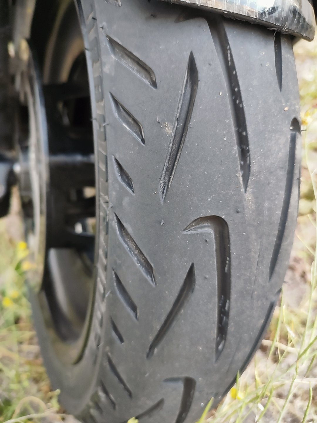 Sowas ist eigentlich bei den großen Herstellen nicht mehr stand der Technik, aber naja irgendwie muss der Preis ja zustande kommen. Positiv ist erstmal das er mit 5mm, 1mm mehr Profil hat als der Pirelli. Gewicht ist 300g schwerer 4300g zu 4000g Pirelli. Fährt bisher sehr gut schauen wir mal. Memo für mich Tachostand 17300km .