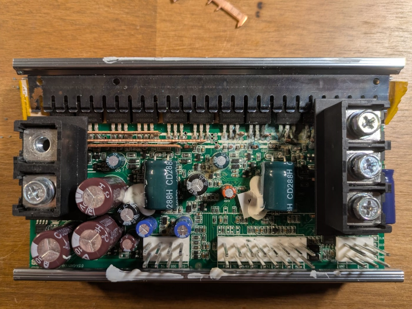 Habe also die Phasenschienen entfernt und nur ein paar funktionierende Endstufen dran gelassen, damit sich der Controller nicht beschwert.