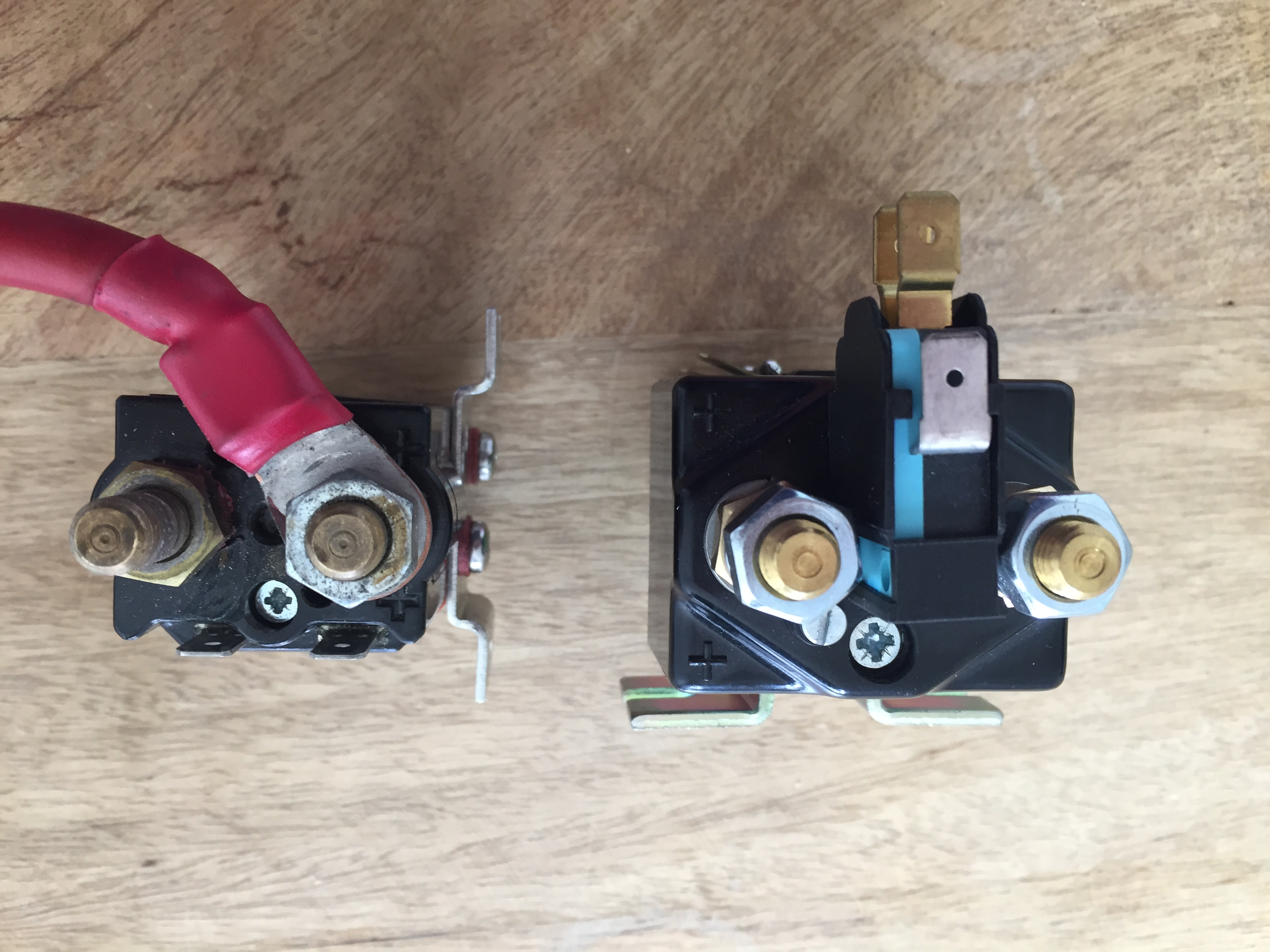 Da haben die Arbeitsströme der vergangenen Wochen sicherlich das Ihre getan und durch thermische Arbeit den Roller heute zum Stillstand gebracht. Ich habe dann natürlich alles fein gesäubert (ein neuer Polkappenschutz kommt morgen noch drauf), mit einer zusätzlichen Unterlegscheibe zwecks grösserer Kontaktfläche komplettiert, mit (schwarzem) Schrumpfschlauch neu ummantelt und jetzt läuft wieder alles nach Plan. Allerdings, nach meiner ersten Probefahrt mit nur ca. 1 km und relativ sachter Beschleunigung konnte ich dann, wieder daheim, schon wieder eine gewisse Erwärmung des Kontaktbereiches am Schütz festsstellen. Am liebsten würde ich mir ein neues Pluskabel von der Batterier bis zum Schütz gönnen, mal sehen wo ich so etwas kriege.