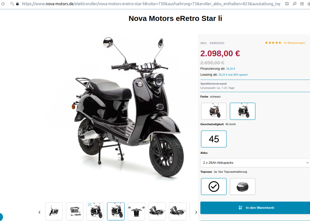 Übrigens müsste es sich bei dem bei Kleinanzeigen.de inserierten Roller um den eRetro Star Li von Nova-Motors handeln.