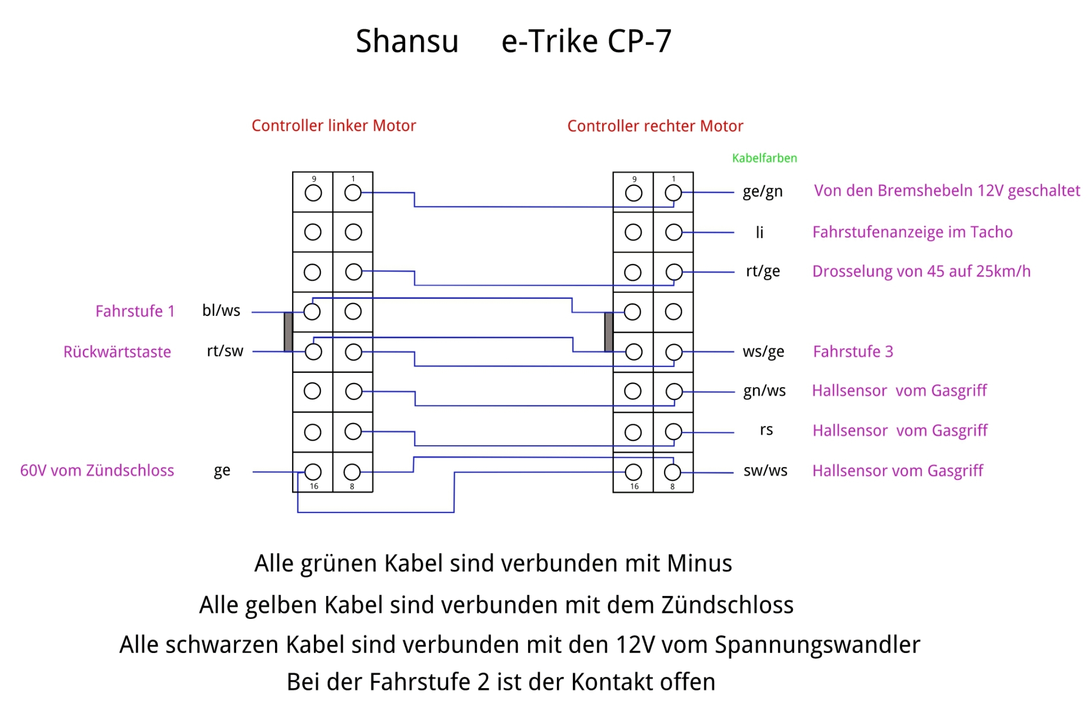 in verkehrsberuhigten Zonen ist mir die Beschleunigung zu groß und ein sanftes Anfahren geht bei dem Gasgriff nicht. Deshalb habe ich mir einen Schalter eingebaut um bei Bedarf einen Motor abzuschalten.