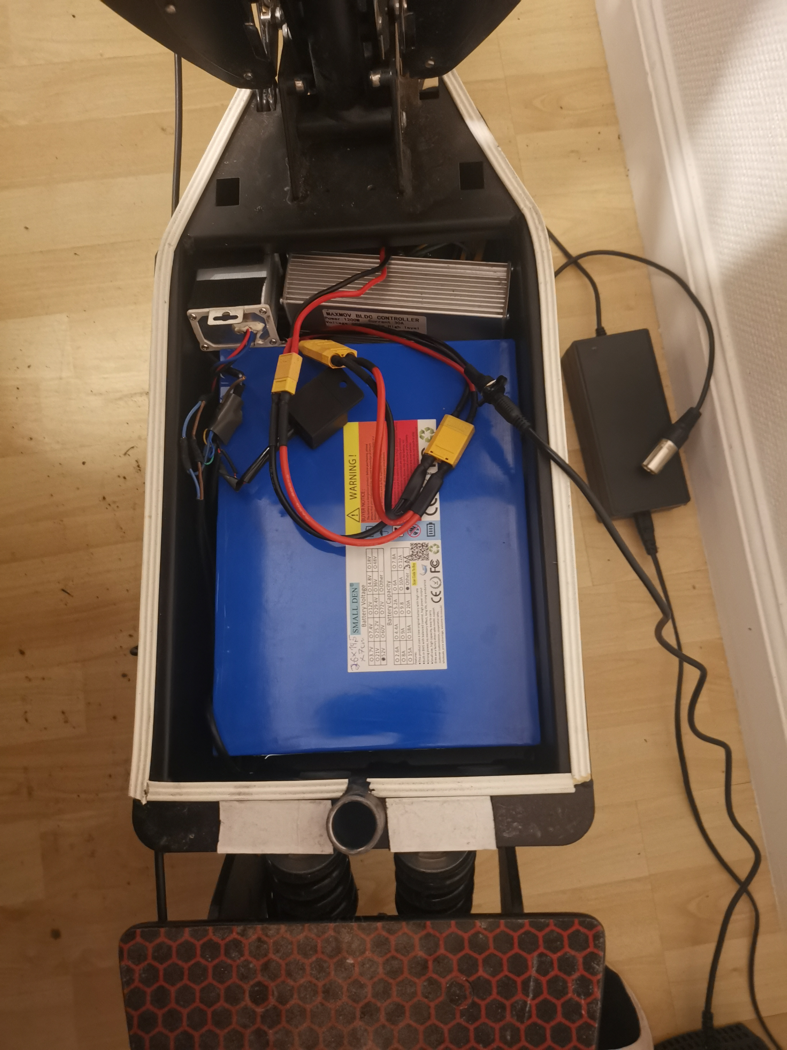 Ich werde mal die Test mit den Menüeinstellungen machen und hier posten. Unten noch ein Foto vom 52 Volt Akku im Bauch des Rollers.