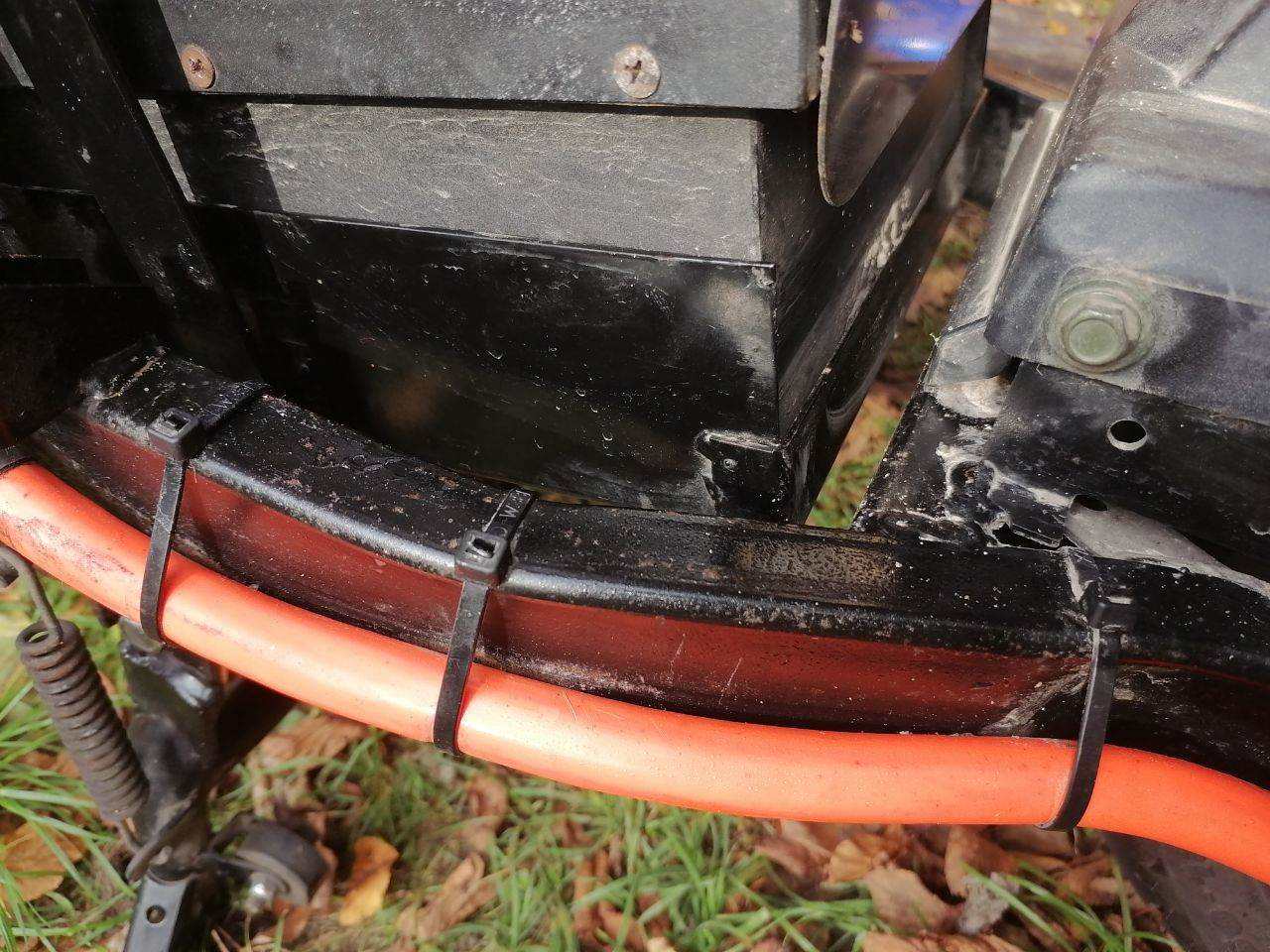 Die Federn der hinteren Stoßdämpfer scheinen am meisten abbekommen zu haben, der Rahmen selber sieht in weiten Teilen sehr gut aus. Zumindest im Dunkeln, ich mache morgen im Tageslicht nach dem Putzen nochmal ein Bild. Die Schrauben ließen sich sehr gut lösen- kein Wunder, der Freundliche hatte vieles davon im Frühjahr schon mal runtergebaut um die Stoßdämpfer zu wechseln. Dabei hatte er ein paar Schrauben ersetzen müssen und in der Folge die Schrauben in Schmierfett getunkt vorm einschrauben.