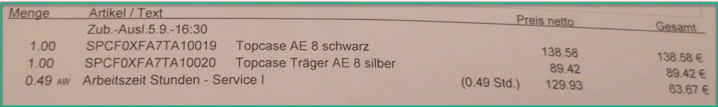 Es ist in der Tat hinten die Brücke und das Topcase ich glaube mich zu erinnern das TC alleine um €150.-