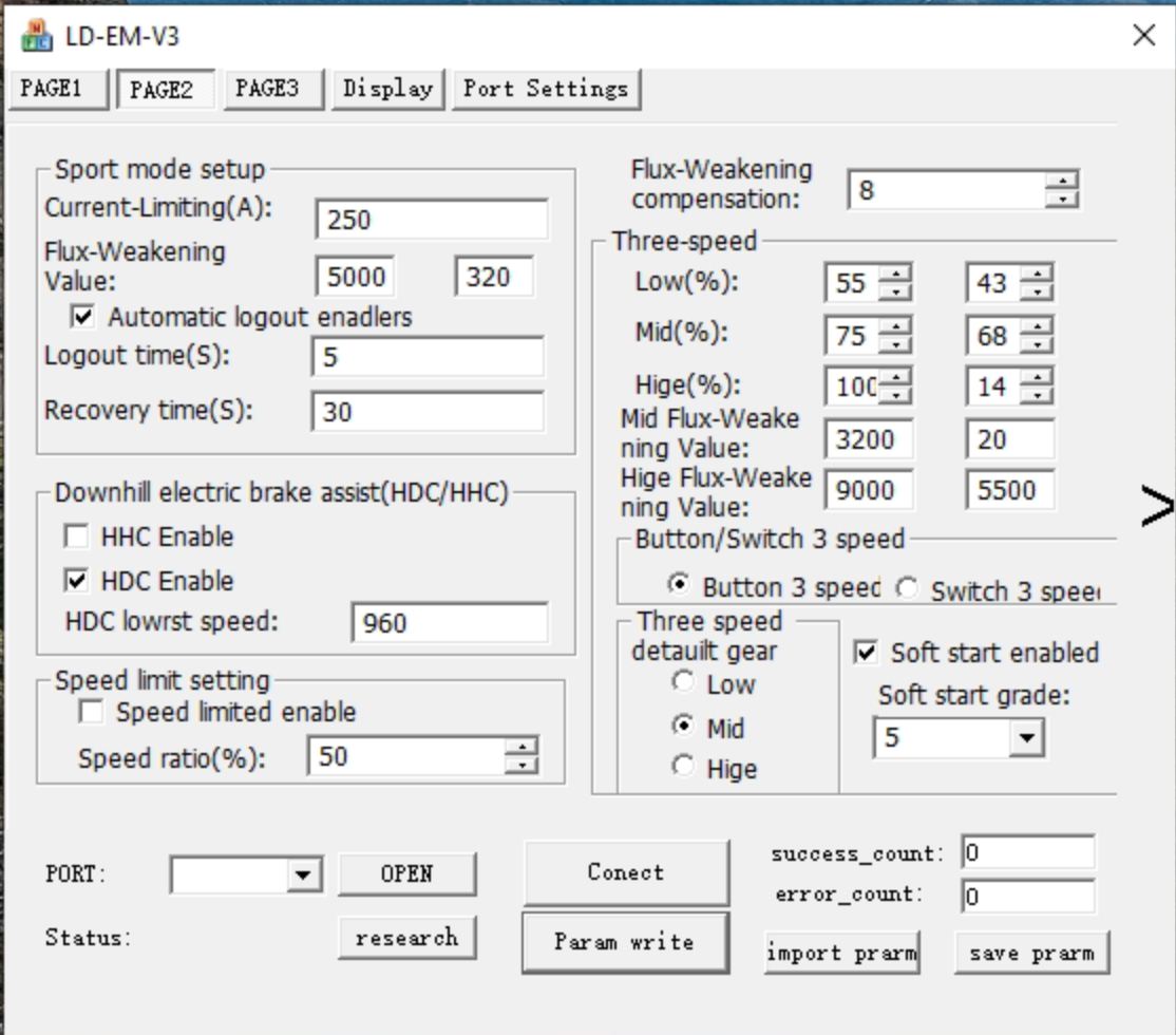 In der zweiten Spalte, aber nur für LOW und MID, werden die anteiligen maximalen Ströme bezogen auf den "Current-Limiting(A)" Wert im "Sport mode setup" links oben auf PAGE angegeben. 37% von 230 A(mpere) sind 85 A, das könnte aber knapp werden mit 80-85, spätestens bei Gegenwind.
