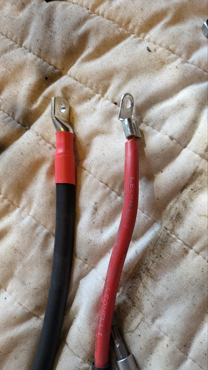 Das jetzt noch dünne kurze rote Originalkabel kommt nächste Woche raus und wird ein 35 qmm.