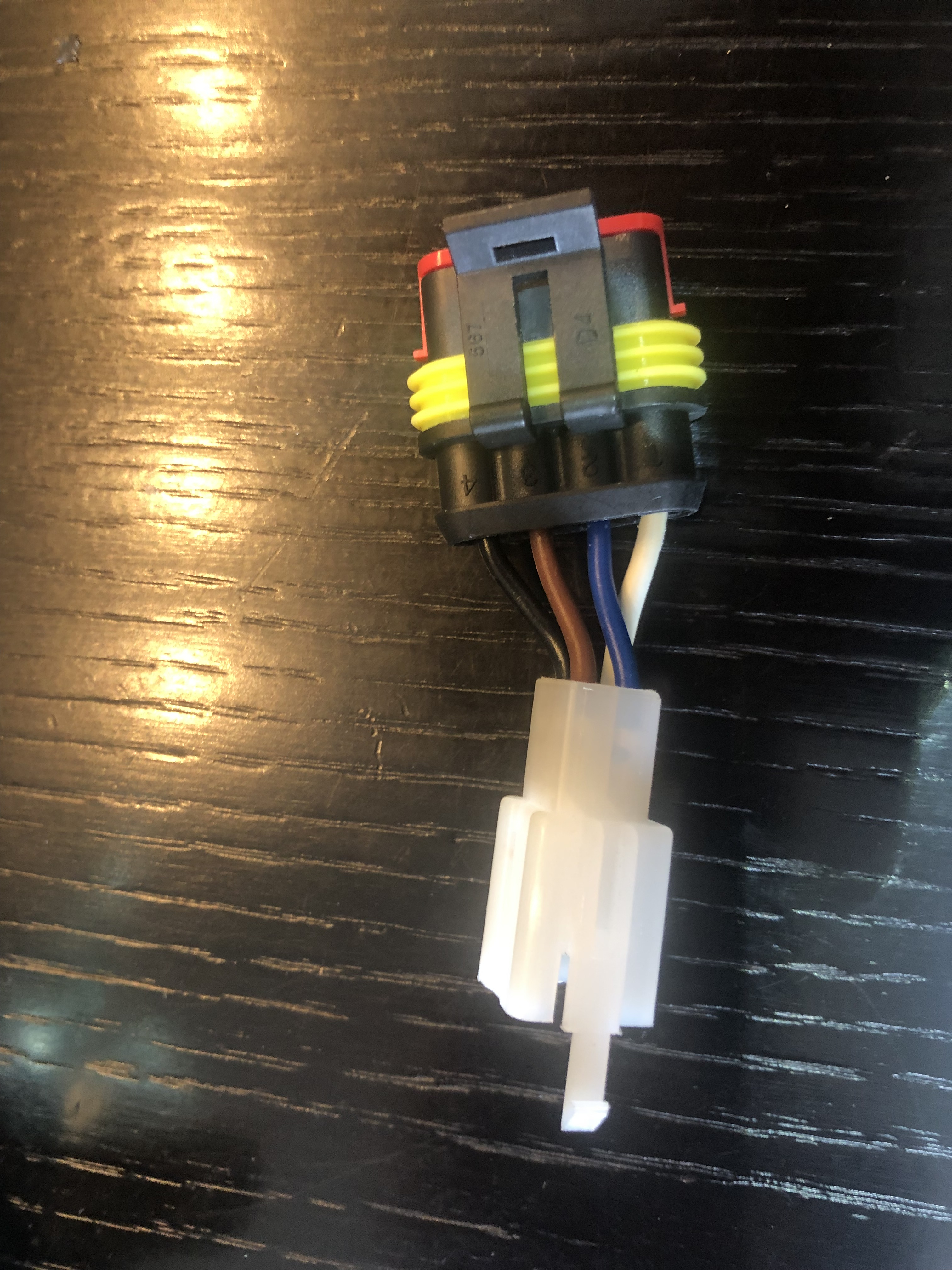 Weiterhin habe ich den vorhandenen Scheinwerfer, wie auch den neuen mit anderen Steckern versehen. So kann ich schnell umbauen, sollte mal TÜV fällig werden.
