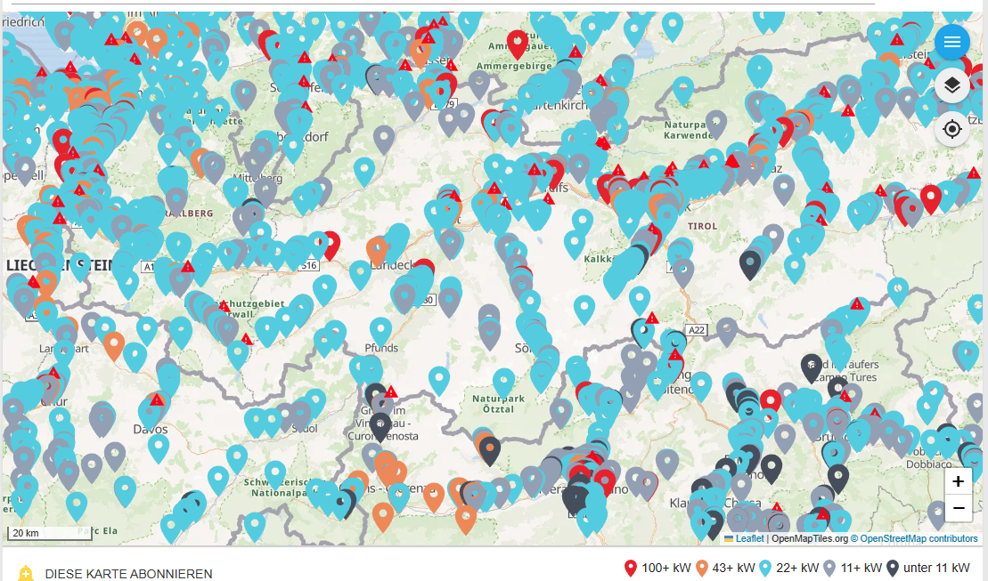 Hier, rund um Innsbruck zwischen Bayern und Italien. Wo soll man da mit CCS liegenbleiben bitteschön?! Und zur Vollständigkeit für die Zeros die Ladepunkte mit Typ 2: