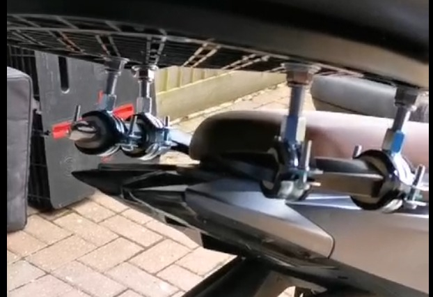 I wanted to add a top box at low cost, so I attached a top box plate to the grab handles using pipe fixings.
