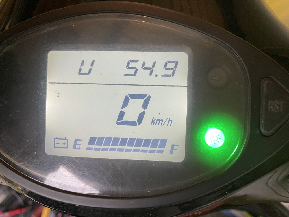 Derzeit sind sämtliche Messwerte wieder ok. Am Controller liegt jetzt wieder die volle Akku-Spannung an, ich habe an den Controller-Anschlussklemmen fast denselben Wert gemessen wie direkt am Akku (tatsächlich ca. 0,2 Volt weniger, was auf das Konto der Splitbox gehen dürfte). Auch das Lenker-Instrument und die Smartphone-App zeigen diesen Wert an (derzeit 54,9 Volt wegen teilentladenem Akku, bei vollem Akku wären es 58 Volt).