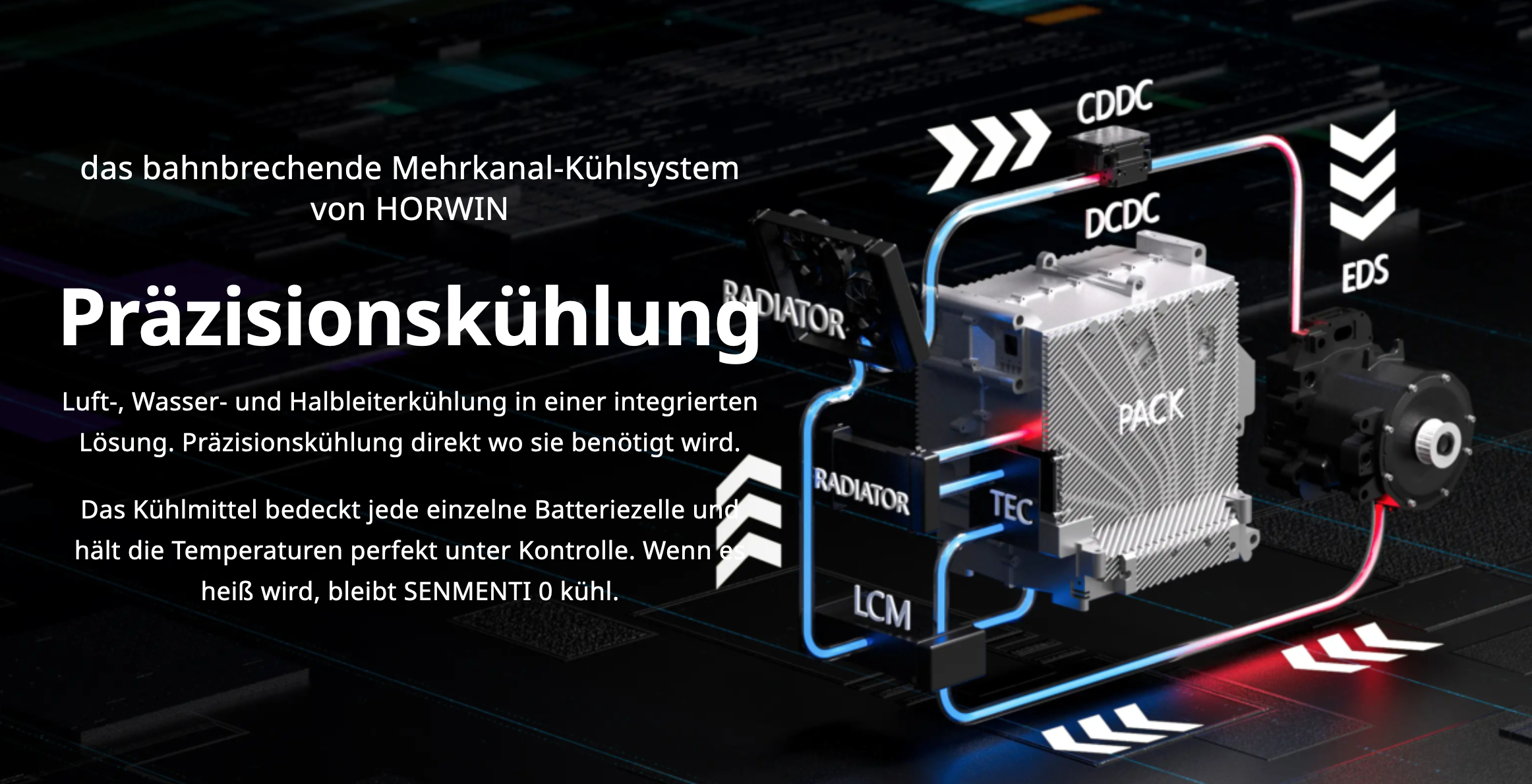 Horwin lässt dieses Kühlmittel zirkulieren, was wohl den Anforderungen von Ladung und Leistung geschuldet ist. So ein Kühlmittel hat sicher auch Nachteile, wie Preis, Temperaturleitfähigkeit, etc.