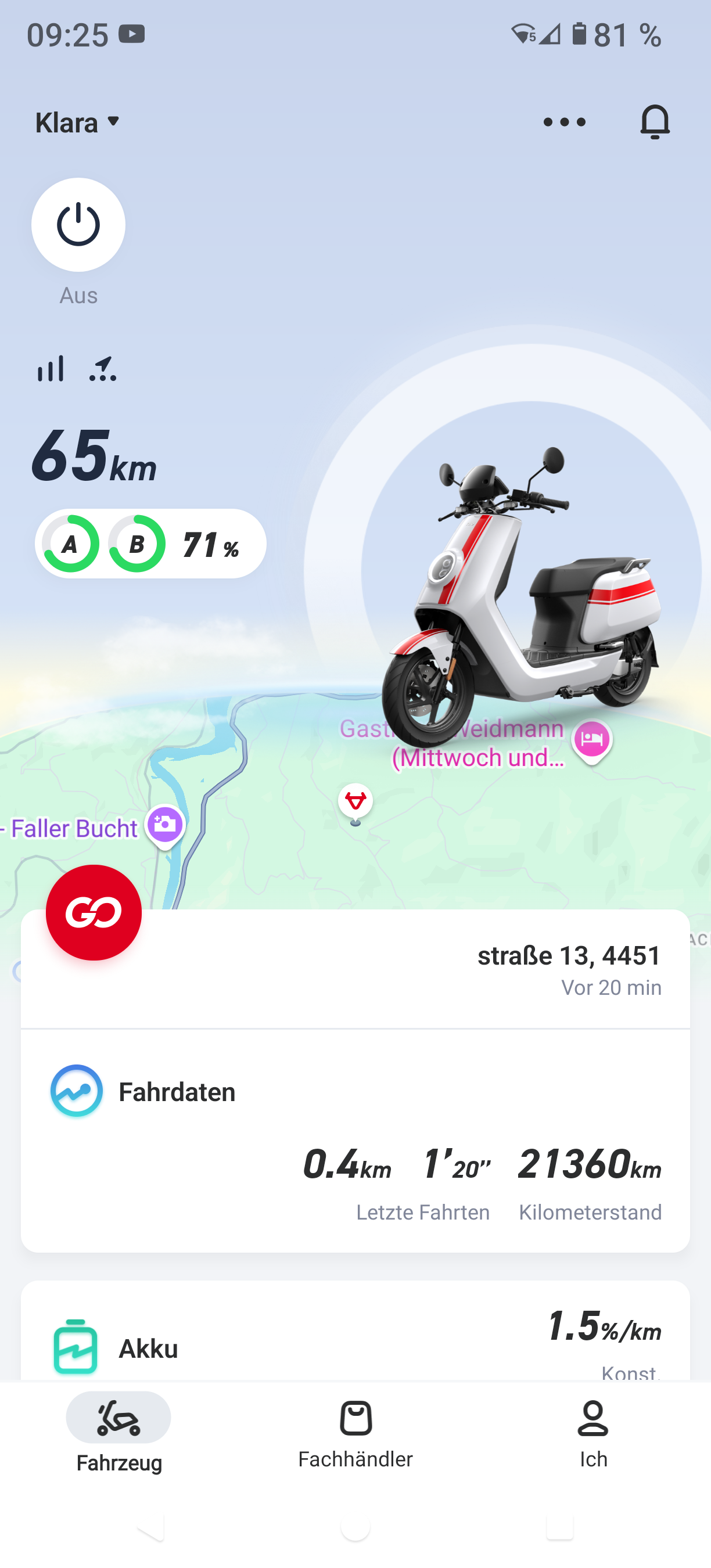 - 21.281km | NIU NQi Sport ___ | EZ 06/2020 | 1. Akku | 382 Zyklen | @ Flippy