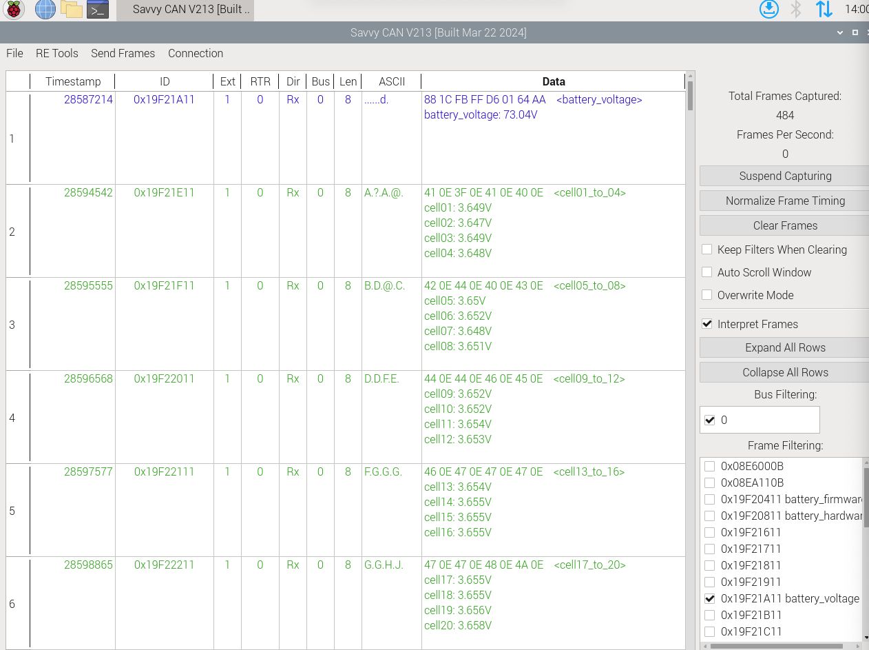 Habe eigentlich nur den Raspberry Pi mit dem CAN RS485 HAT in Verbindung mit der Software SavvyCAN im Einsatz. Zum dekodieren der CAN Meldungen nutze ich die Software ImHex weil dort auf einen Blick alle gängigen Datentypen angezeigt werden.