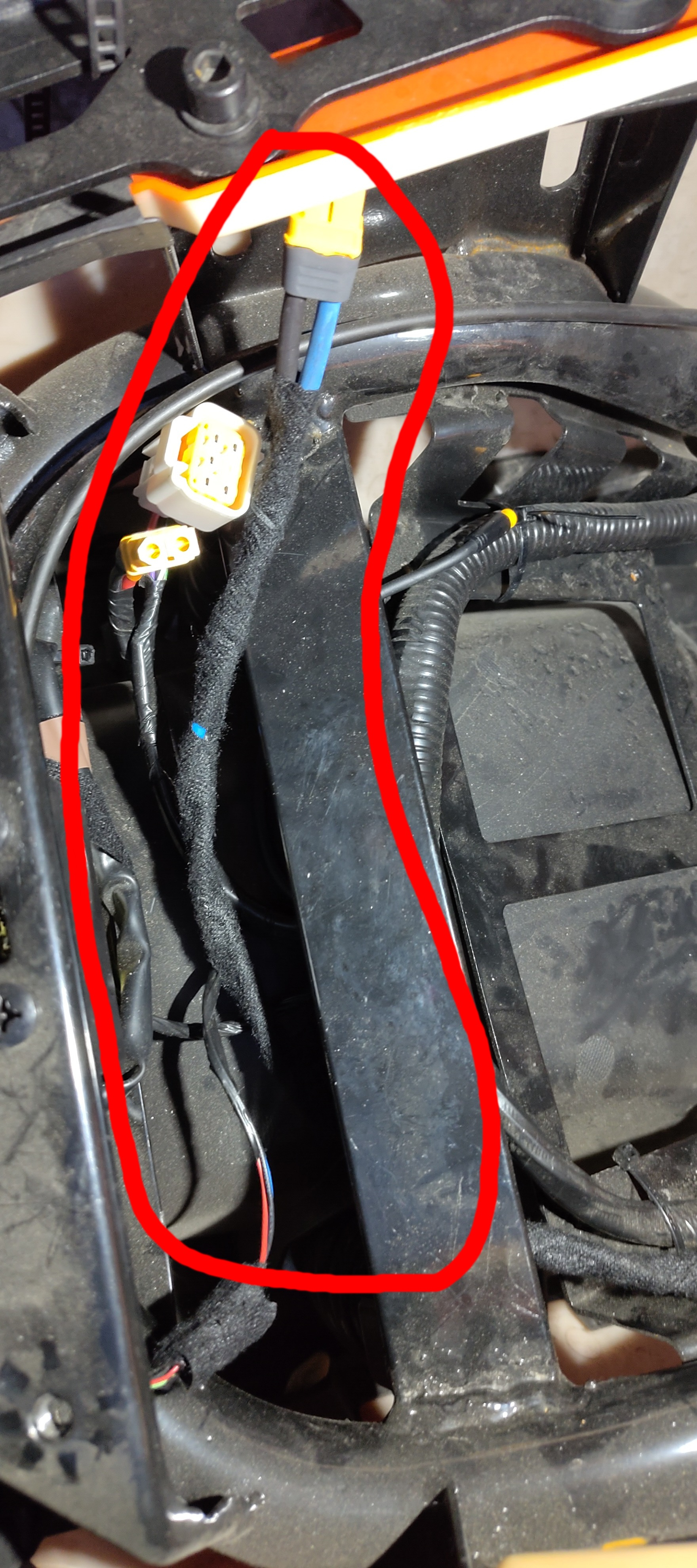 Ich hab hier 4mm2 Leitung verwendet, bisschen oversized für die Länge und nur 20A, aber die war gerade da. Falls du mit dem Querschnitt runter gehst, würde ich dann kurzschlussfeste Leitung empfehlen (NSGAFÖU o. Solarleitung), damit im Falle des Falles (Kurzschluss, Kabelbruch, Kabel aufgescheuert, Buchse verschmort), bevor die BMS abschalten, nicht vorher das Kabel anfängt zu schmoren oder sogar brennen und der Roller später in Flammen steht. Aufjeden Fall zu empfehlen ist eine weitere Steckverbindung bevor es in den Sitz geht, damit es nicht nervig wird, wenn man Reifen wechseln und der Motor abgeklemmt werden muss. Im Anhang ein paar Bilder als Anregung, wie ich es umgesetzt habe.