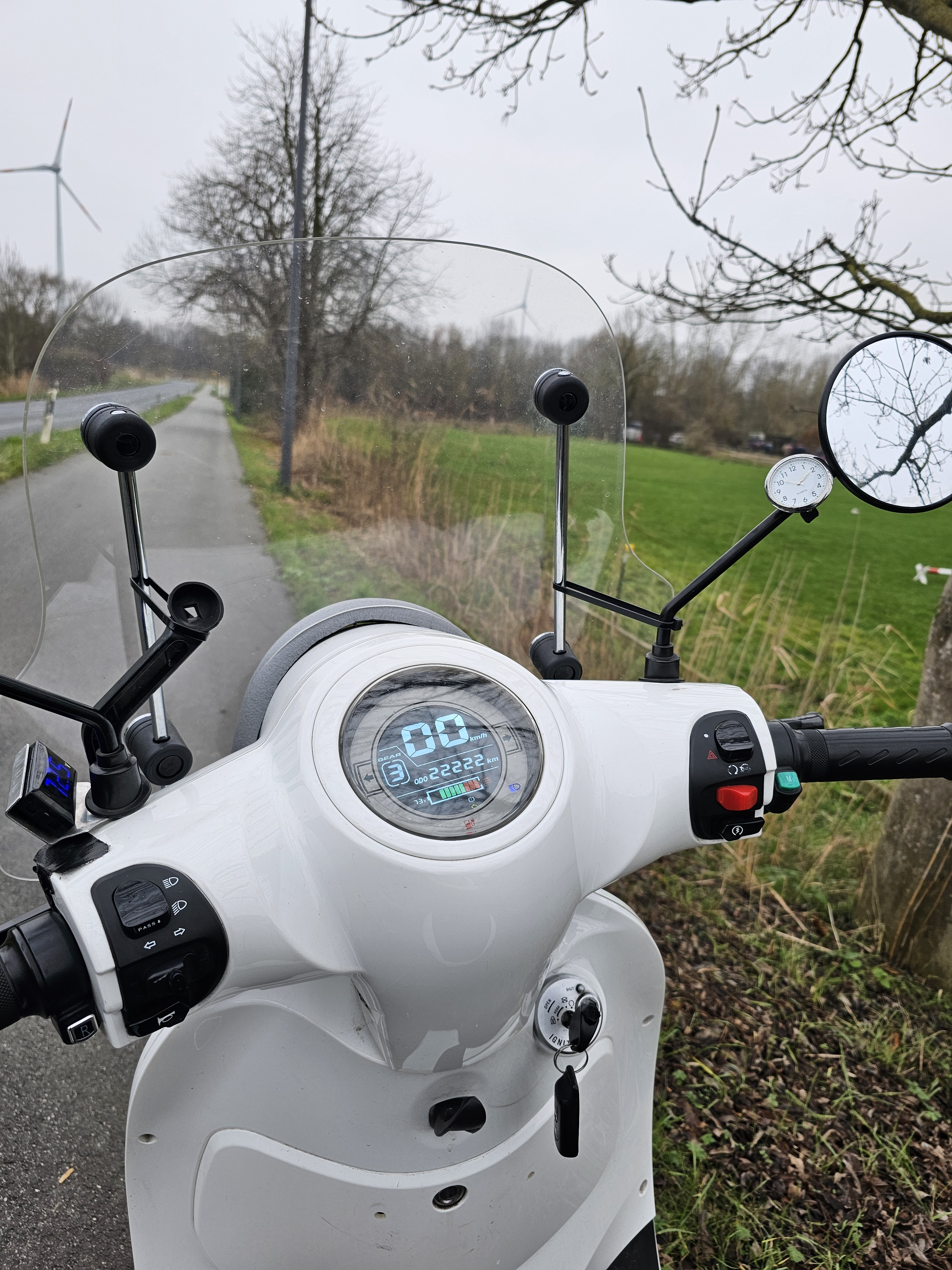Wenn ich deine Kabelbinder am Windschild sehe, verweise ich doch gerne auf meinen Vorschlag einer selbstgebauten Vier-Punkt-Halterung https://www.elektroroller-forum.de/view ... 43#p357143.
